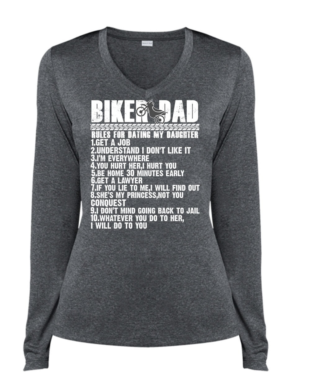 Biker Dad Rules For Dating My Daughter T Shirt, Being A Biker T Shirt, Cool Shirt (Ladies LS Heather V-Neck)