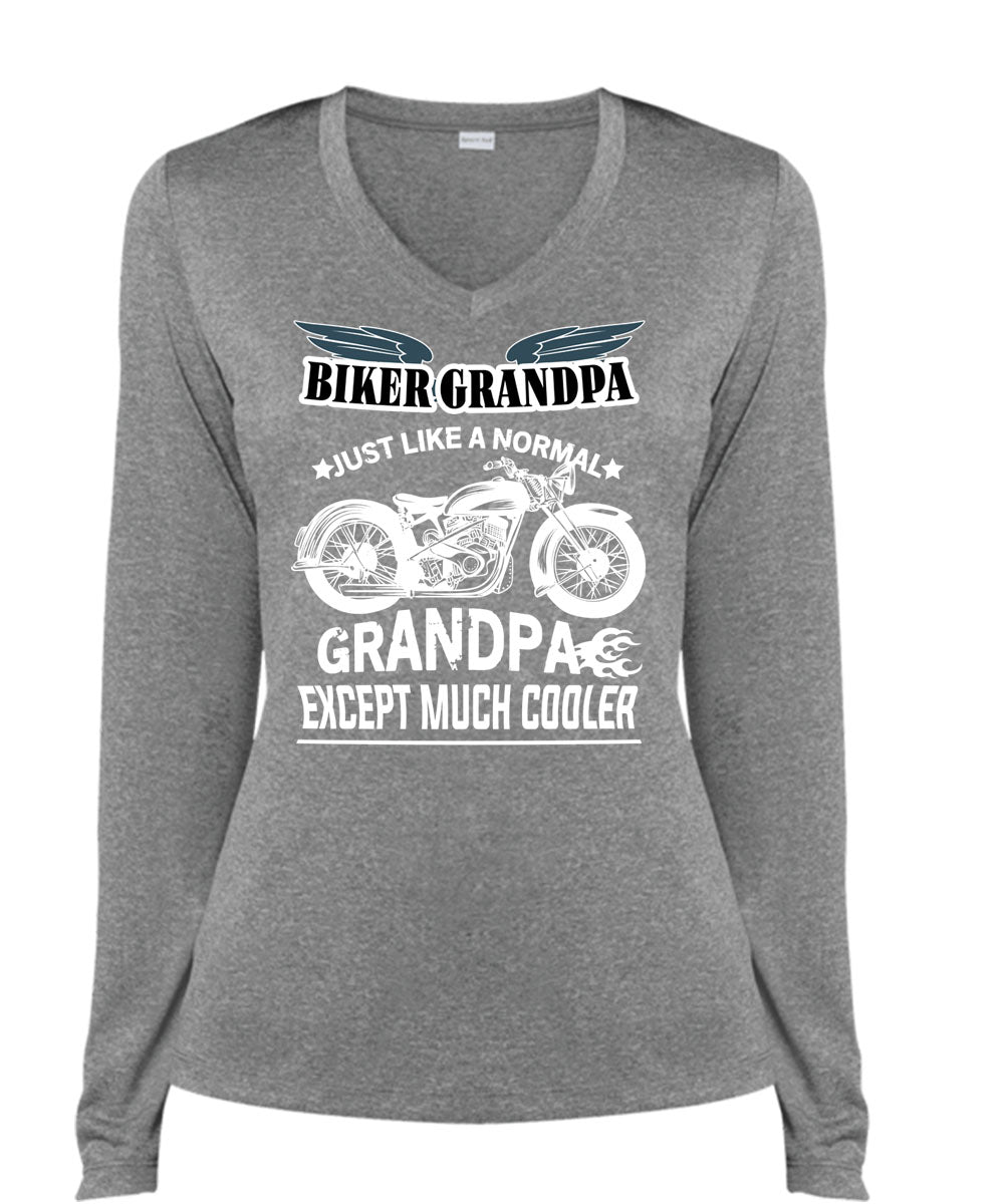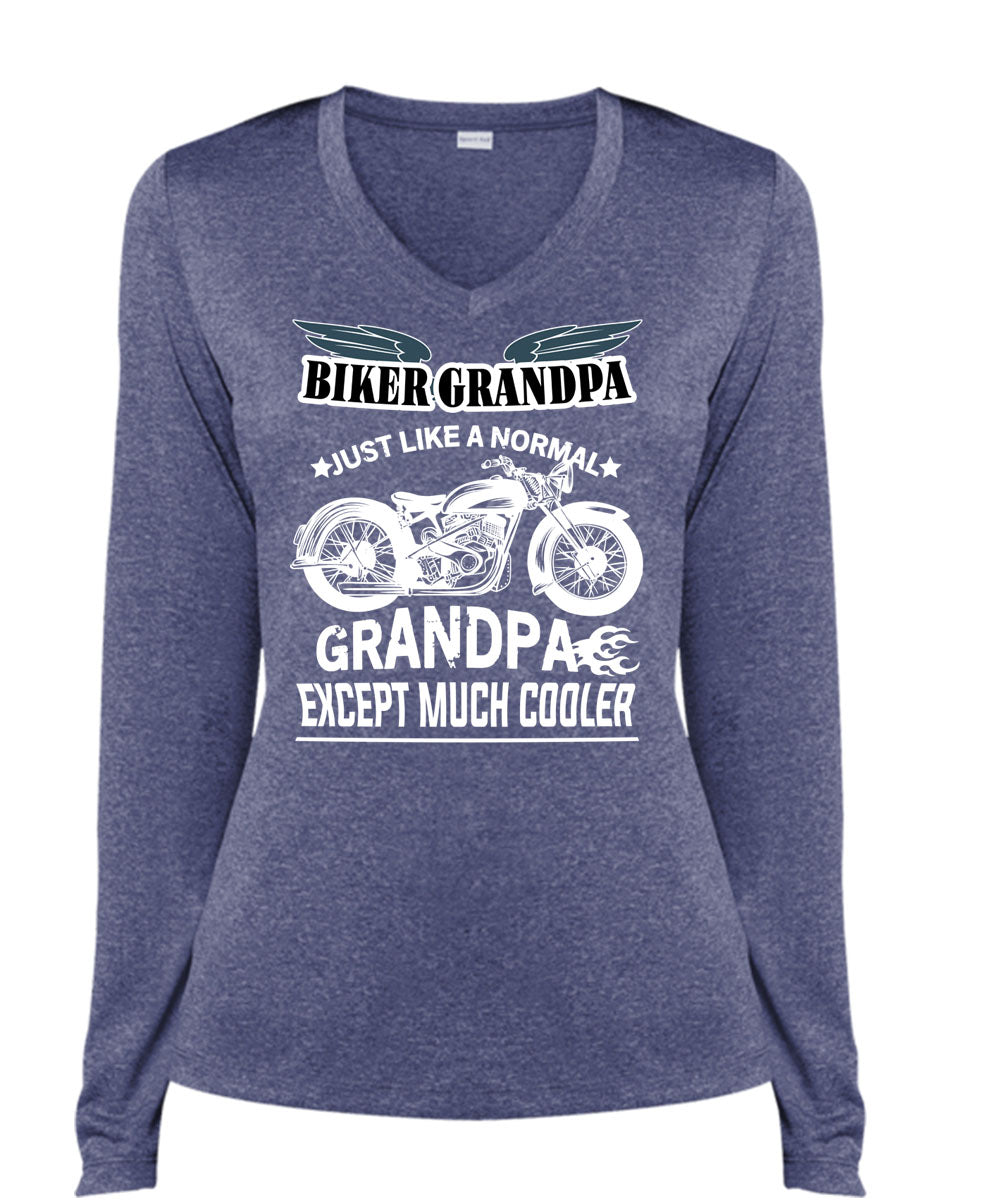 Biker Grandpa Just Like A Normal Grandpa T Shirt, Being A Biker T Shirt, Cool Shirt (Ladies LS Heather V-Neck)