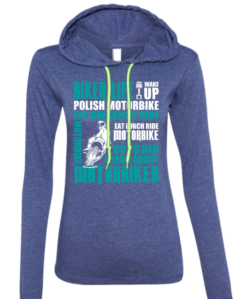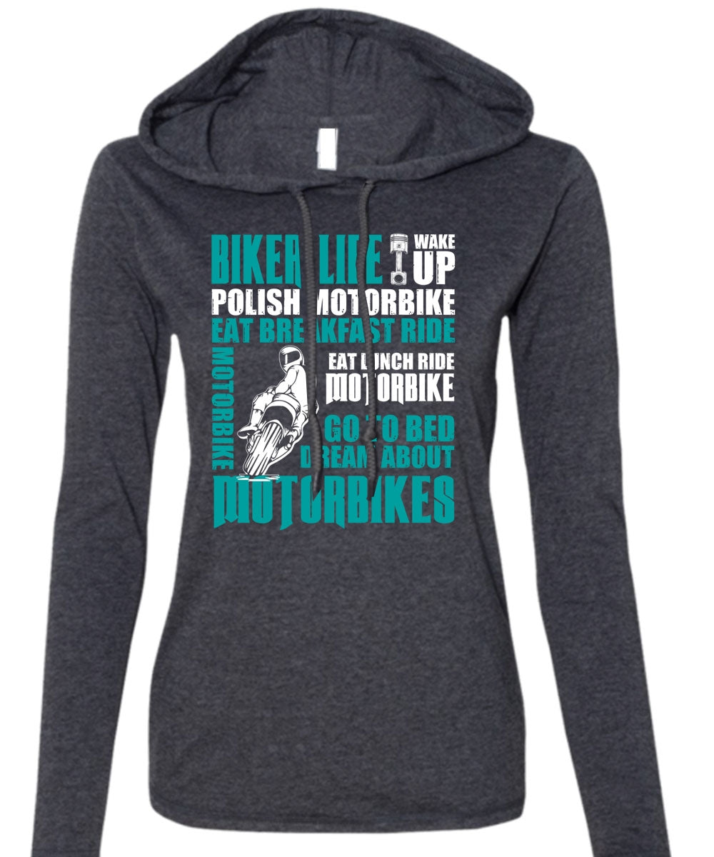 Biker Life T Shirt, Dream About Motorbikes T Shirt (Anvil Ladies Ringspun Hooded)