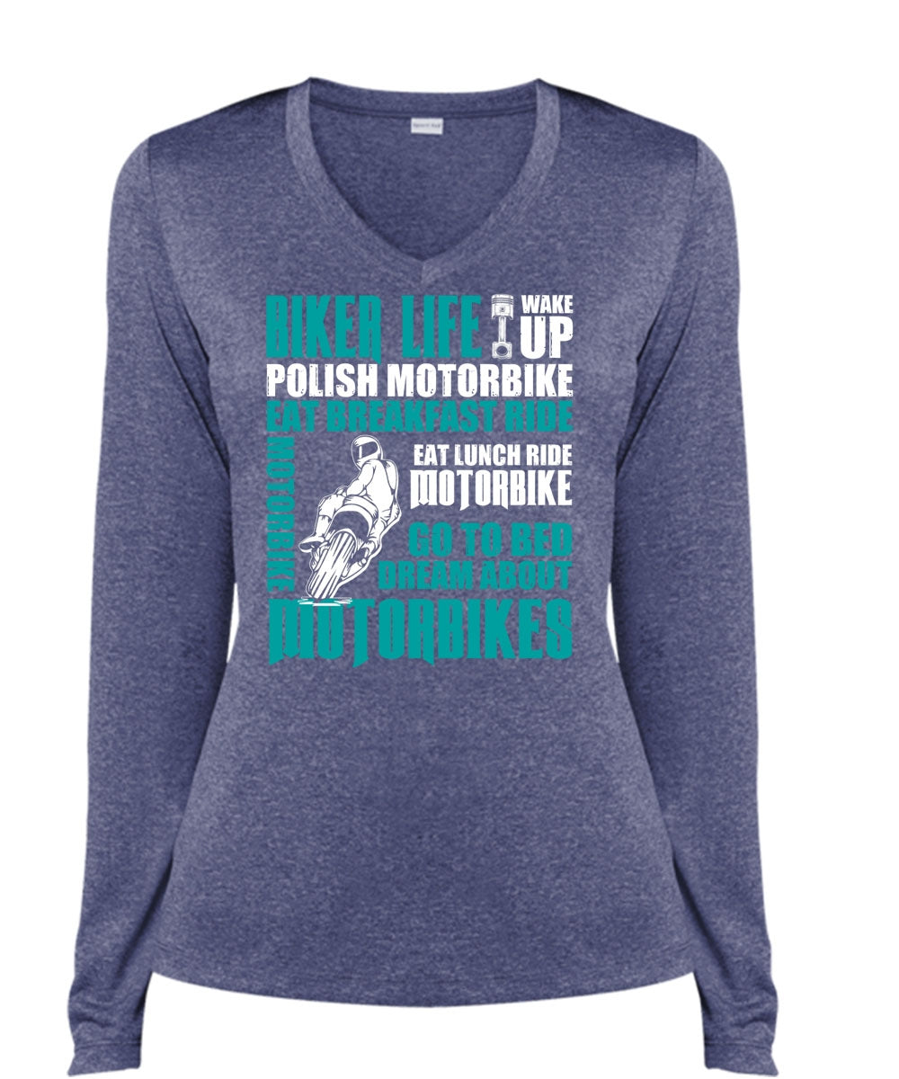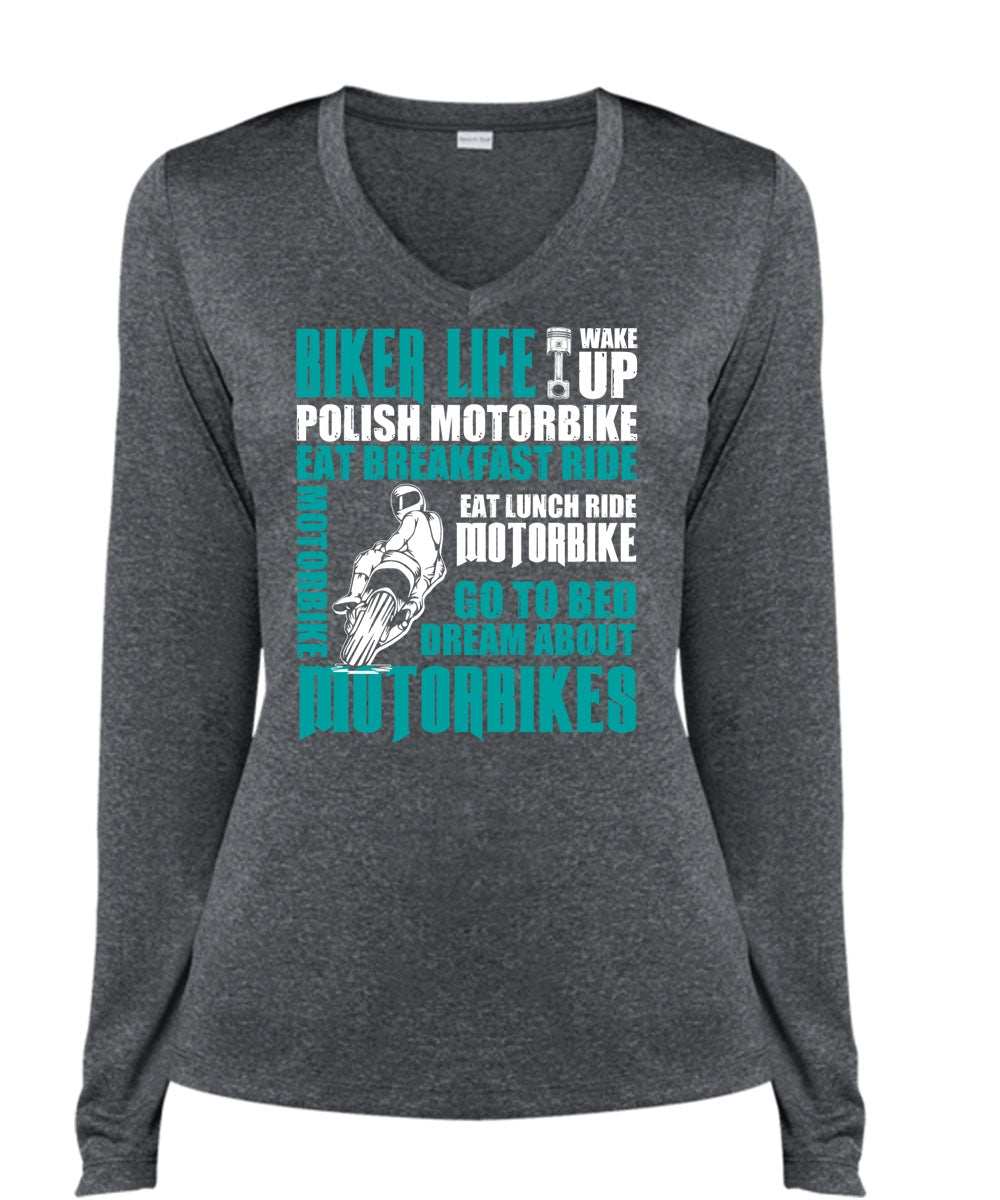 Biker Life T Shirt, Dream About Motorbikes T Shirt, Cool Shirt (Ladies LS Heather V-Neck)
