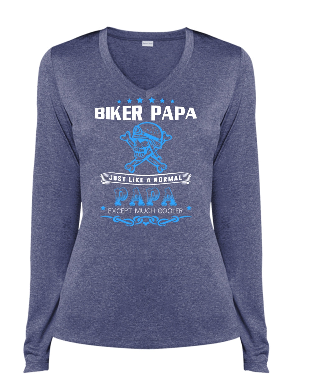 Biker Papa T Shirt, Just Like A Normal Papa Except Much Cooler T Shirt (Ladies LS Heather V-Neck)