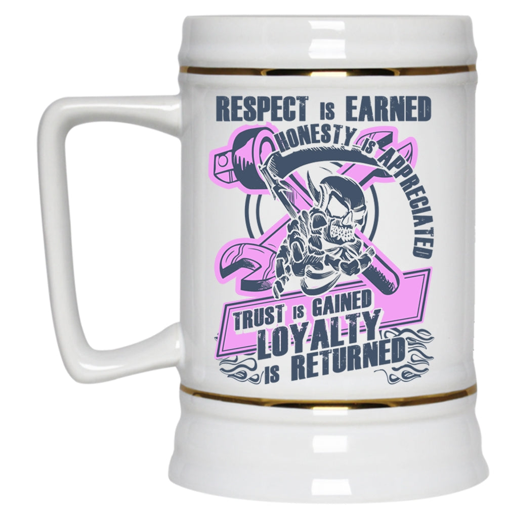 Bikers Beer Stein 22oz, Respect Is Earned Honesty Is Appreciated Beer Mug