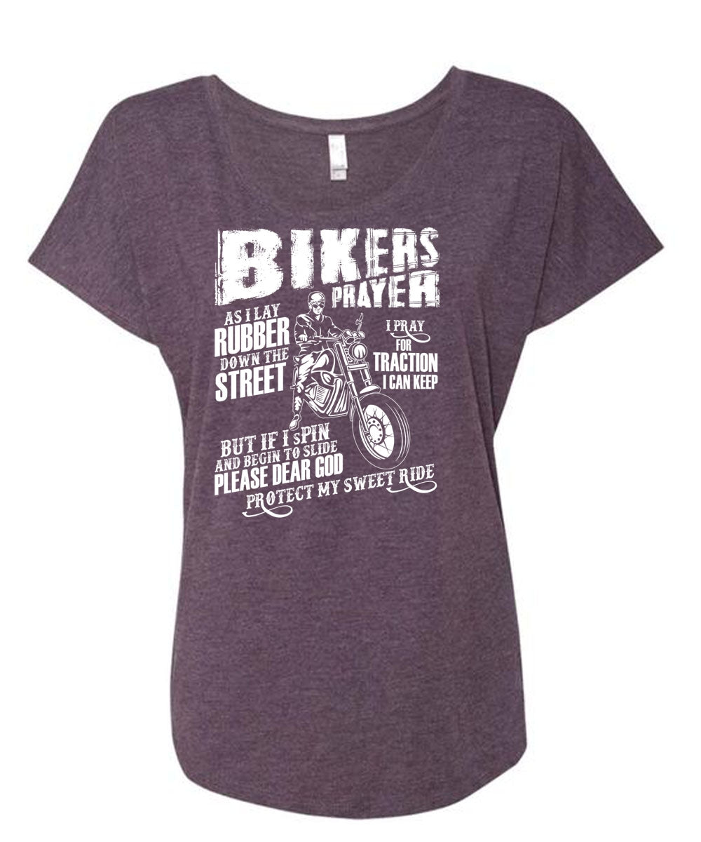 Bikers Prayer T Shirt, I Lay Rubber Down The Street T Shirt, Cool Shirt (Ladies' Triblend Dolman Sleeve)
