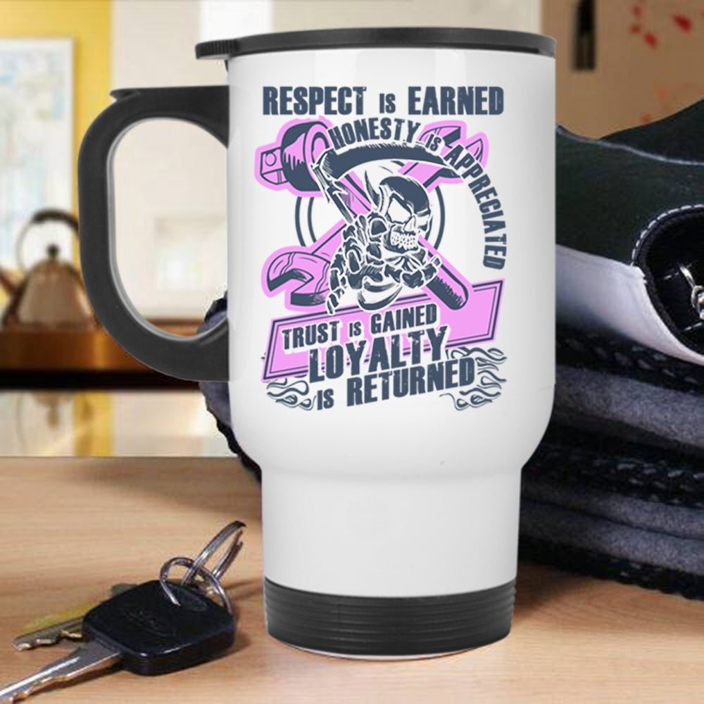 Bikers Travel Mug, Respect Is Earned Honesty Is Appreciated Mug