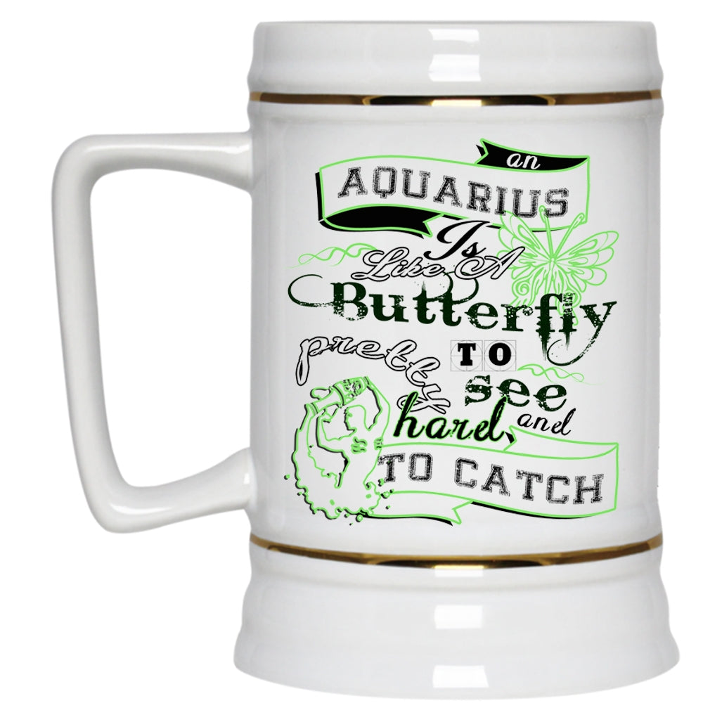 Birthday Gift Beer Stein 22oz, An Aquarius Is Like A Butterfly Beer Mug