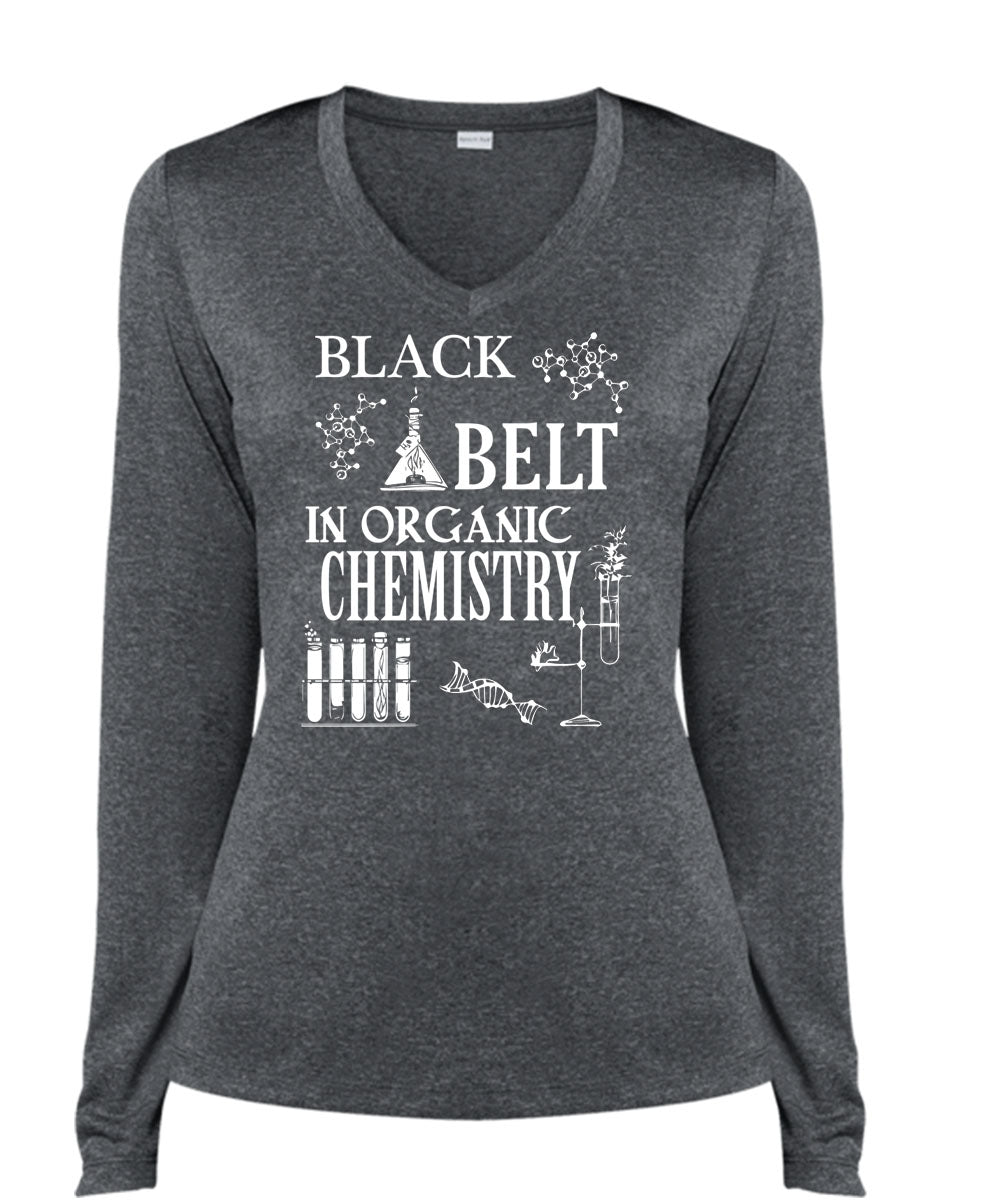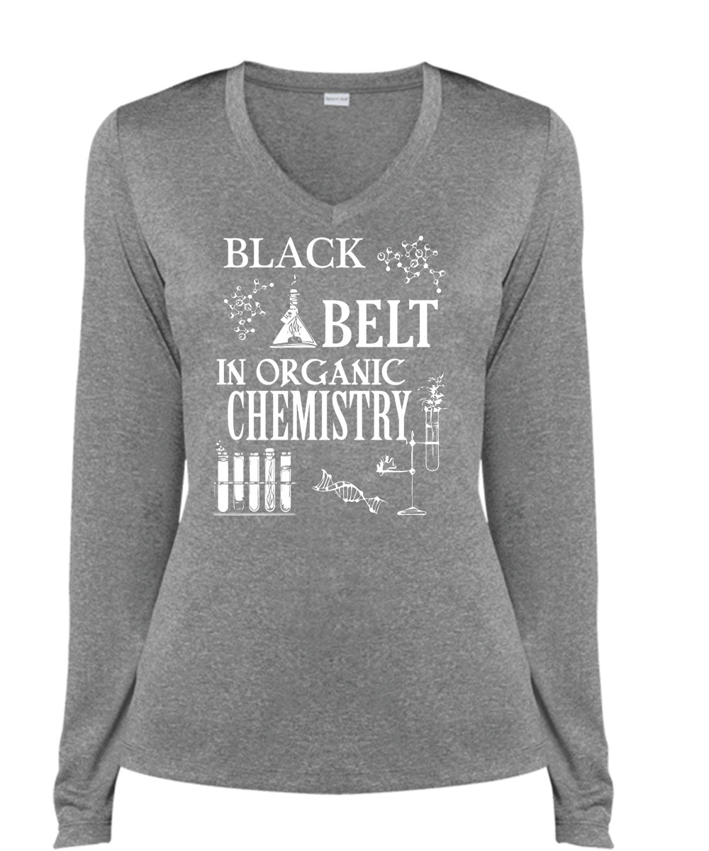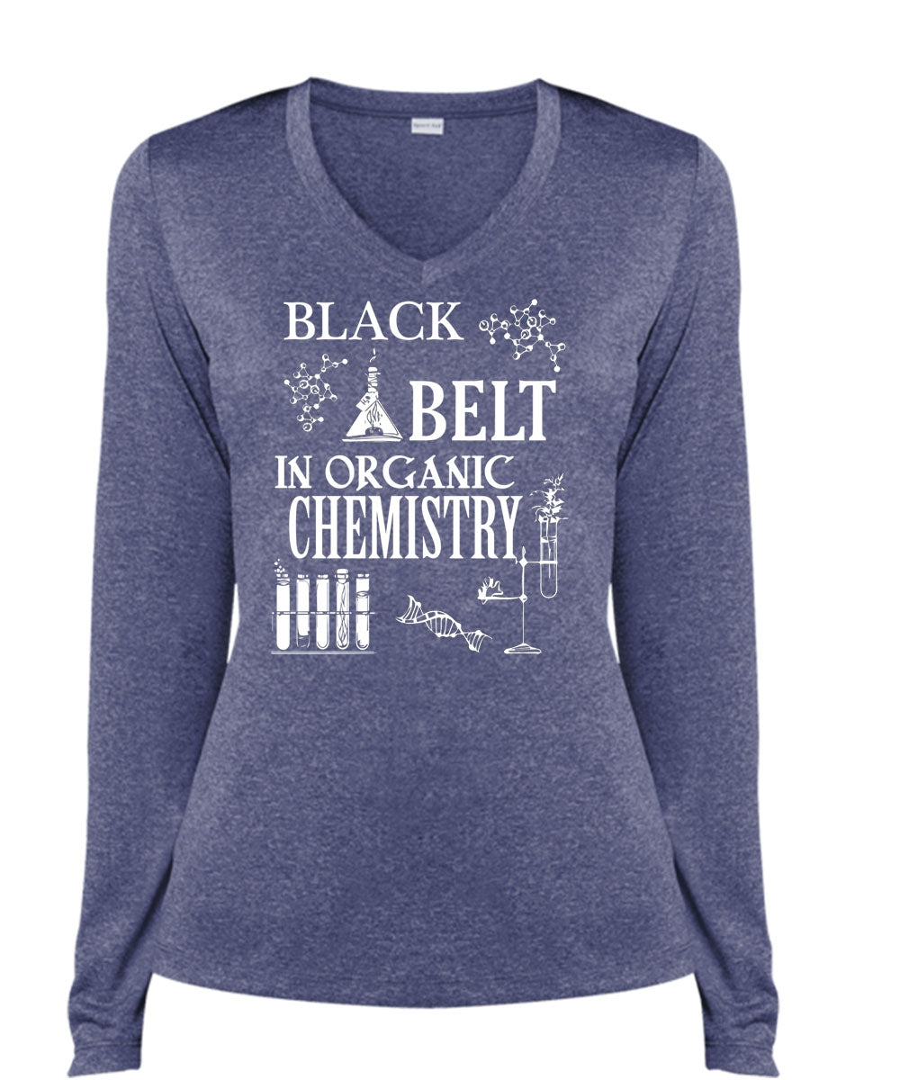 Black Belt In Organic Chemistry T Shirt, Being A Chemist T Shirt, Cool Shirt (Ladies LS Heather V-Neck)