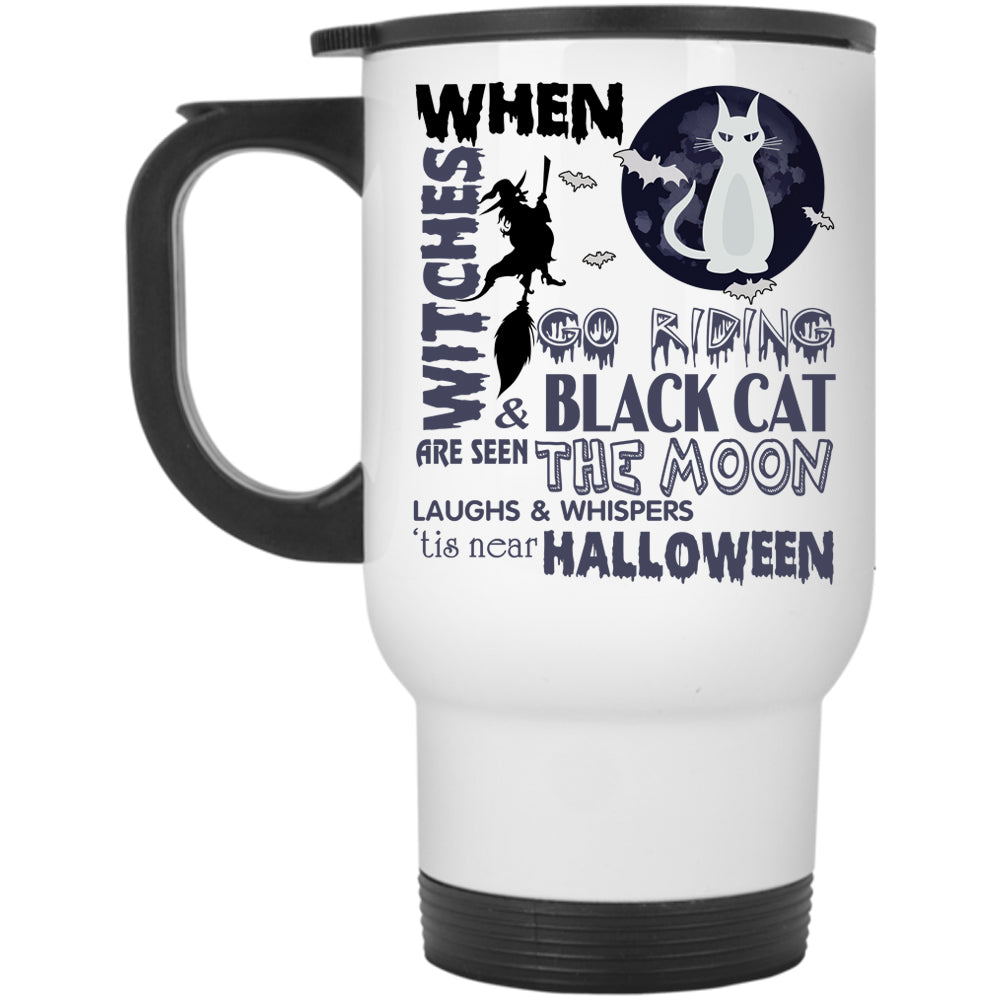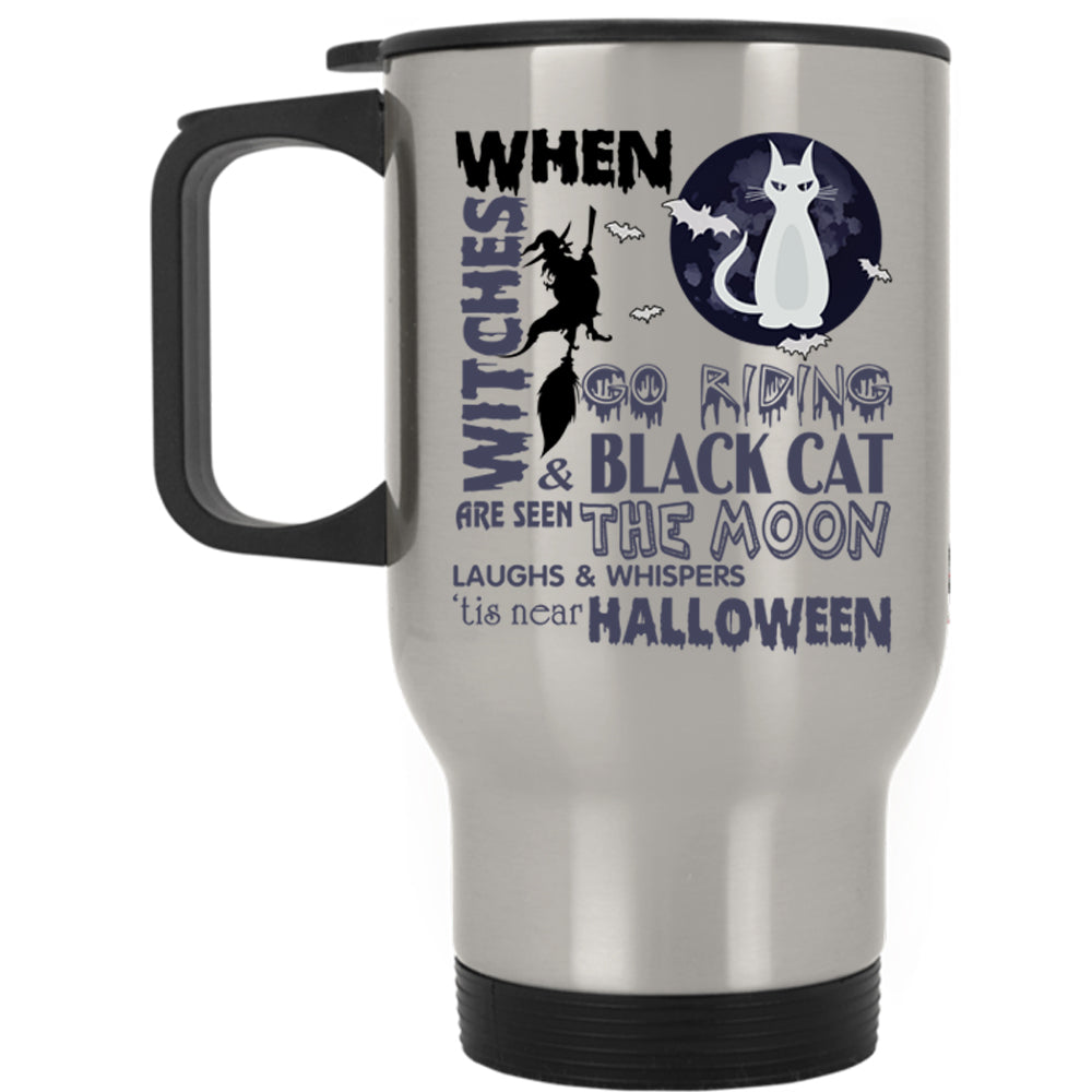Black Cat Are Seen The Moon Travel Mug, Witches Go Riding Mug
