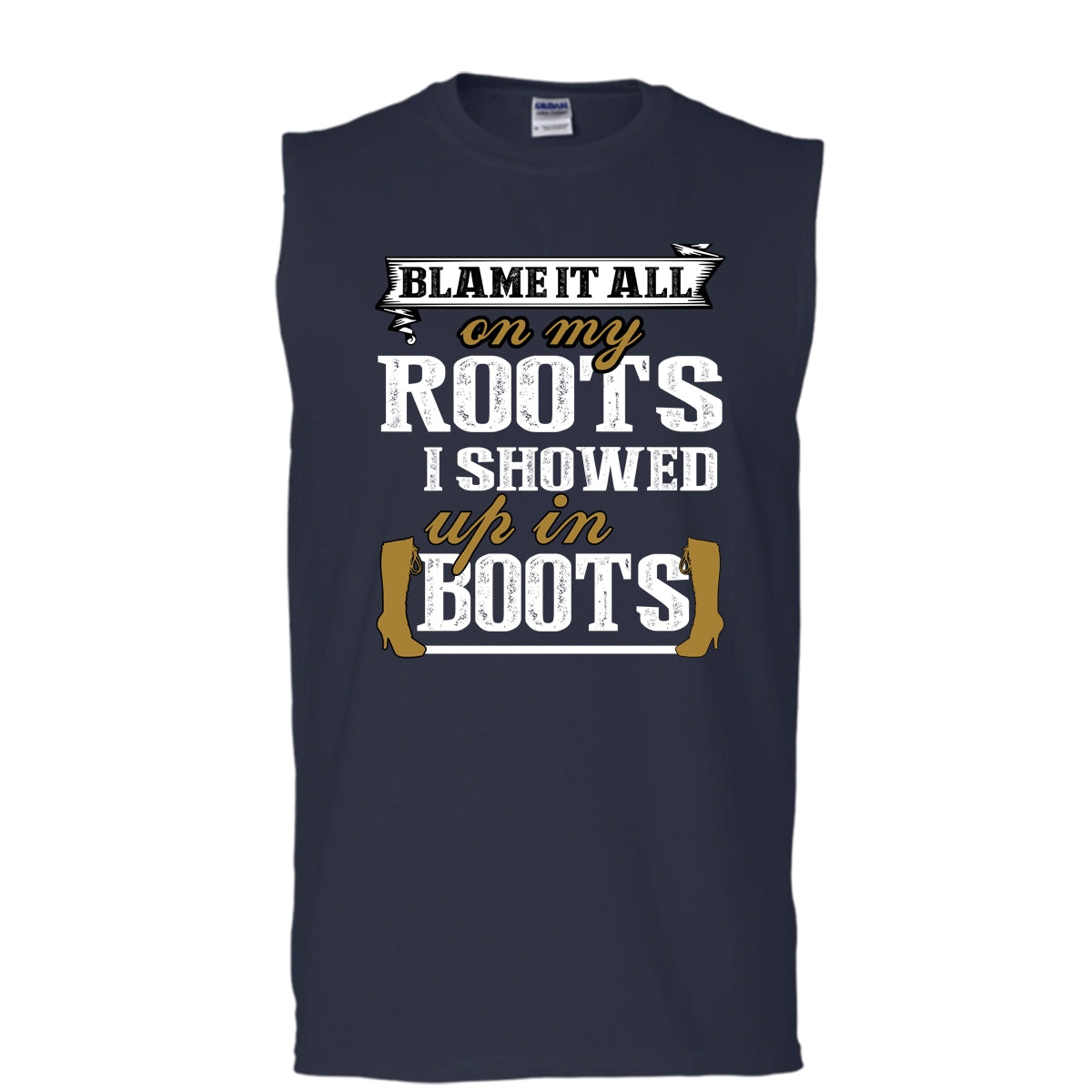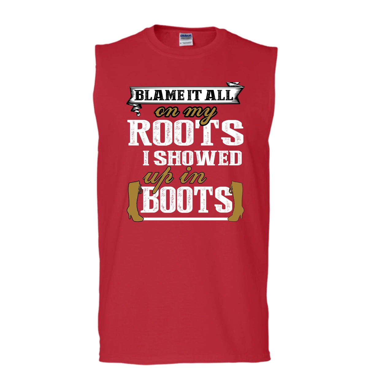 Blame It All On My Roots T Shirt, I Showed Up In Boots Tank Top (Men's Cotton Sleeveless)