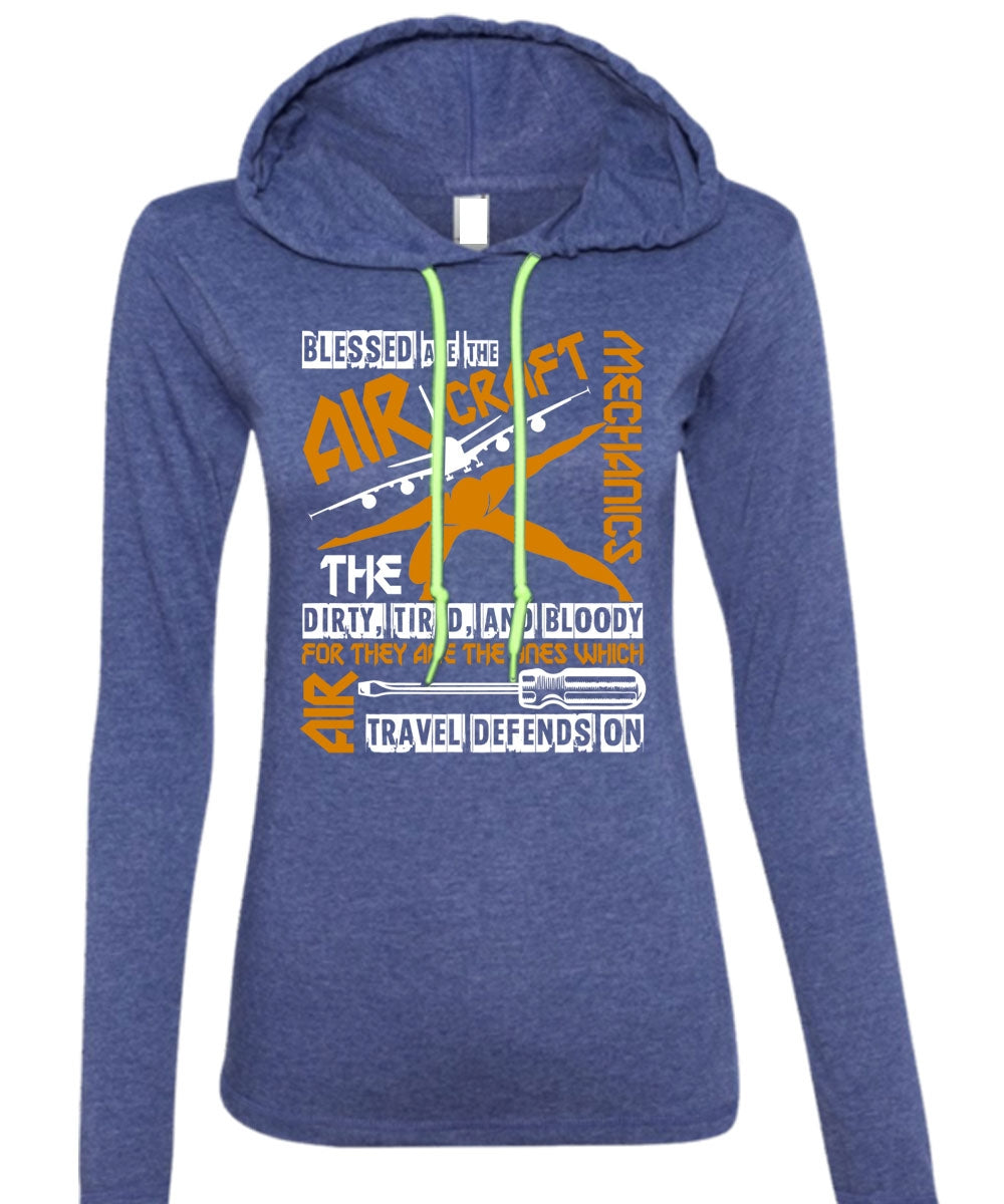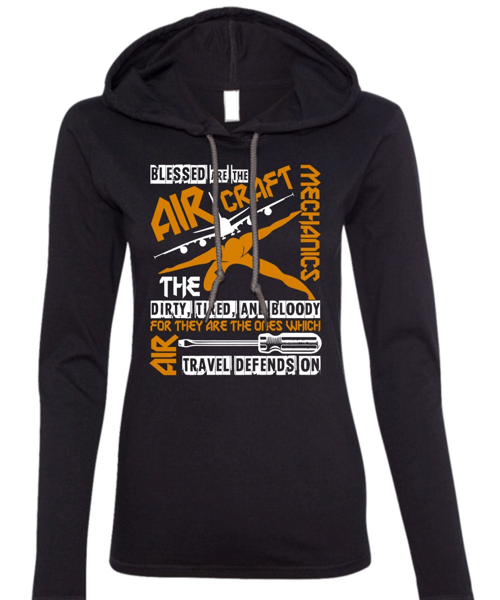 Blessed Are The Aircraft Mechanics T Shirt, Dirty Tired And Bloody T Shirt (Anvil Ladies Ringspun Hooded)