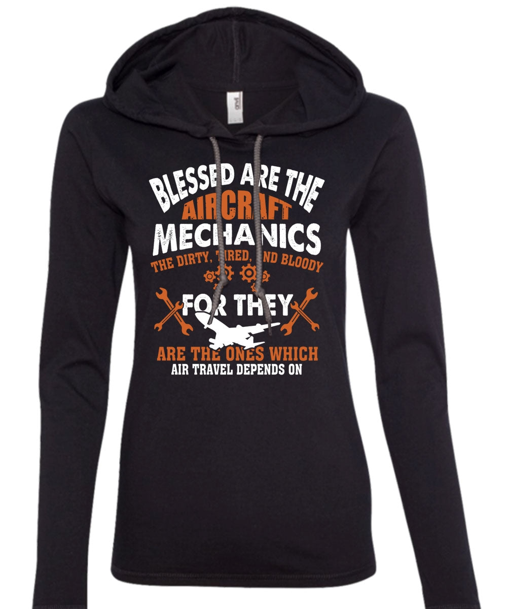 Blessed Are The Aircraft Mechanics T Shirt, Life T Shirt, Career T Shirt (Anvil Ladies Ringspun Hooded)