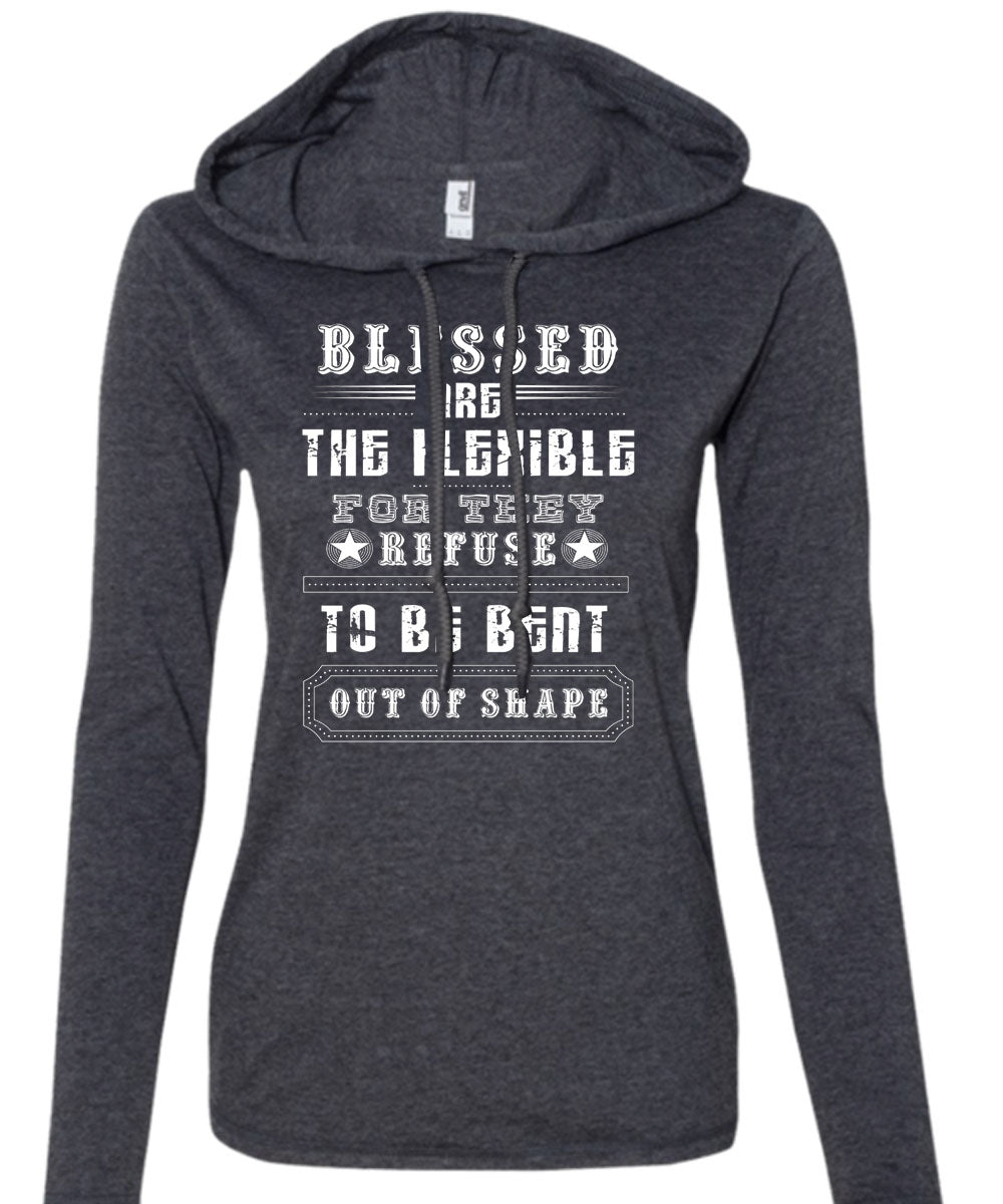 Blessed Are The Flexible For They Refuse To Be Bent Out Shape T Shirt (Anvil Ladies Ringspun Hooded)