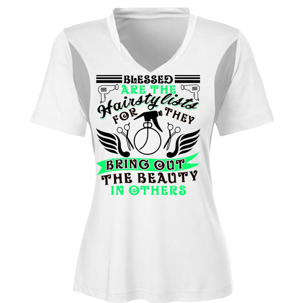 Blessed Are The Hair Stylists T Shirt, Bring Out The Beauty T Shirt, Cool Shirt (Ladies LS Heather V-Neck)