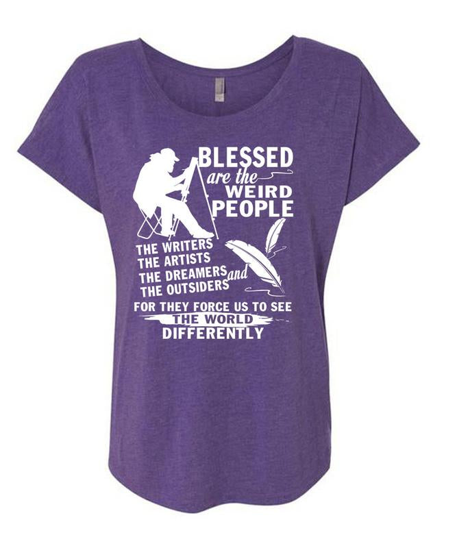 Blessed Are The Weird People T Shirt, The Writers The Artists T Shirt, Cool Shirt (Ladies' Triblend Dolman Sleeve)