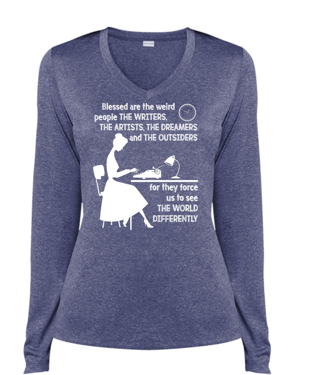 Blessed Are The Weird People The Writers T Shirt, The Artists The Dreamers T Shirt, Cool Shirt (Ladies LS Heather V-Neck)