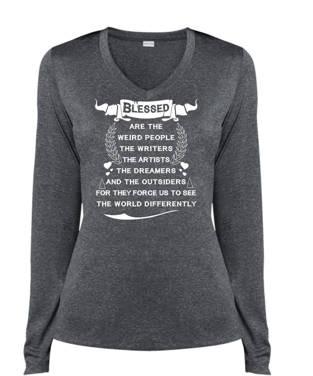 Blessed Are The Weird People The Writers The Artists The Dreamers T Shirt, Job T Shirt (Ladies LS Heather V-Neck)