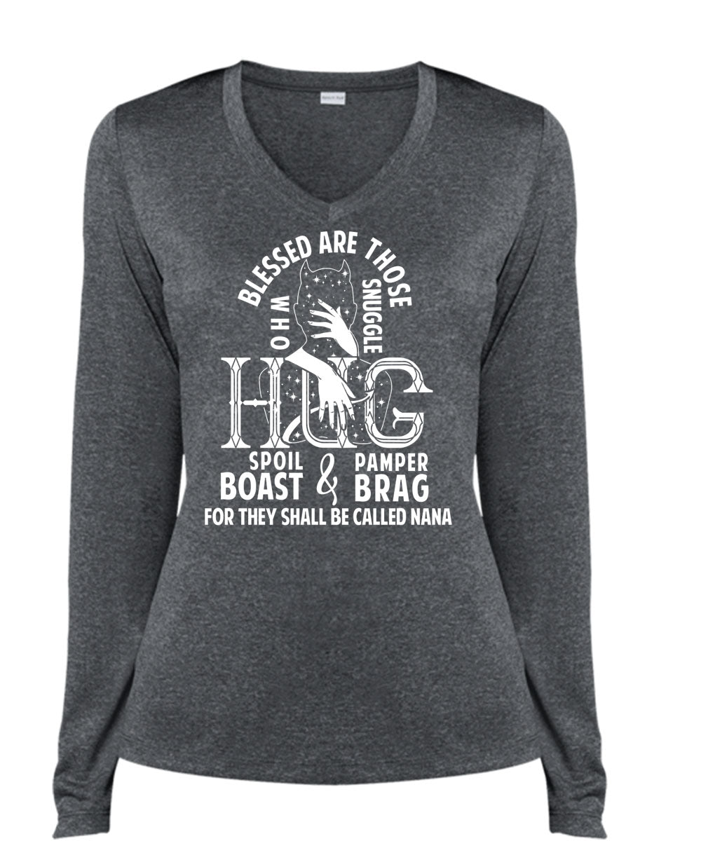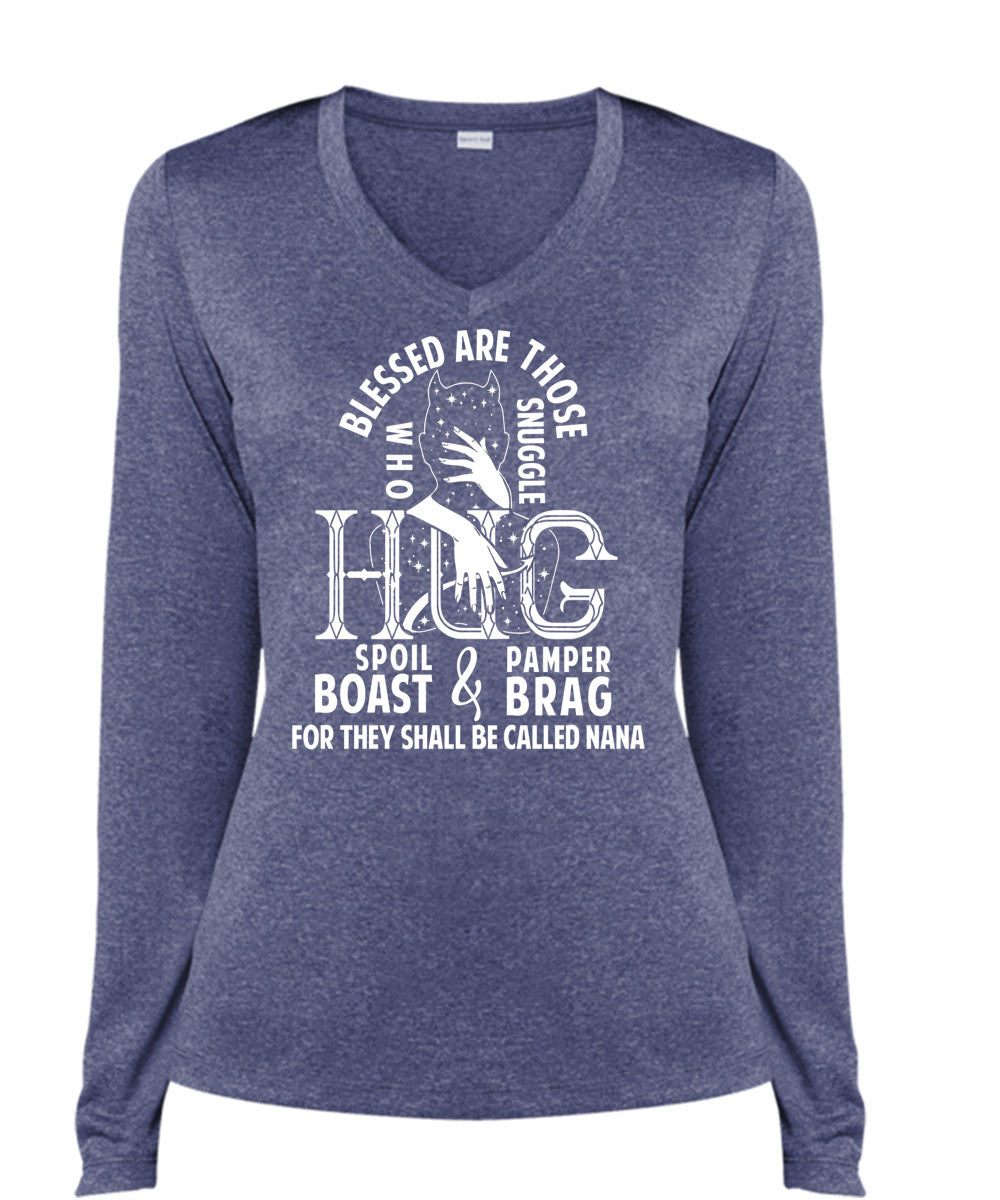 Blessed Are Those Who Snuggle Hug T Shirt, They Shall Be Called Nana T Shirt, Cool Shirt (Ladies LS Heather V-Neck)