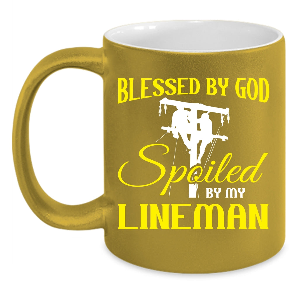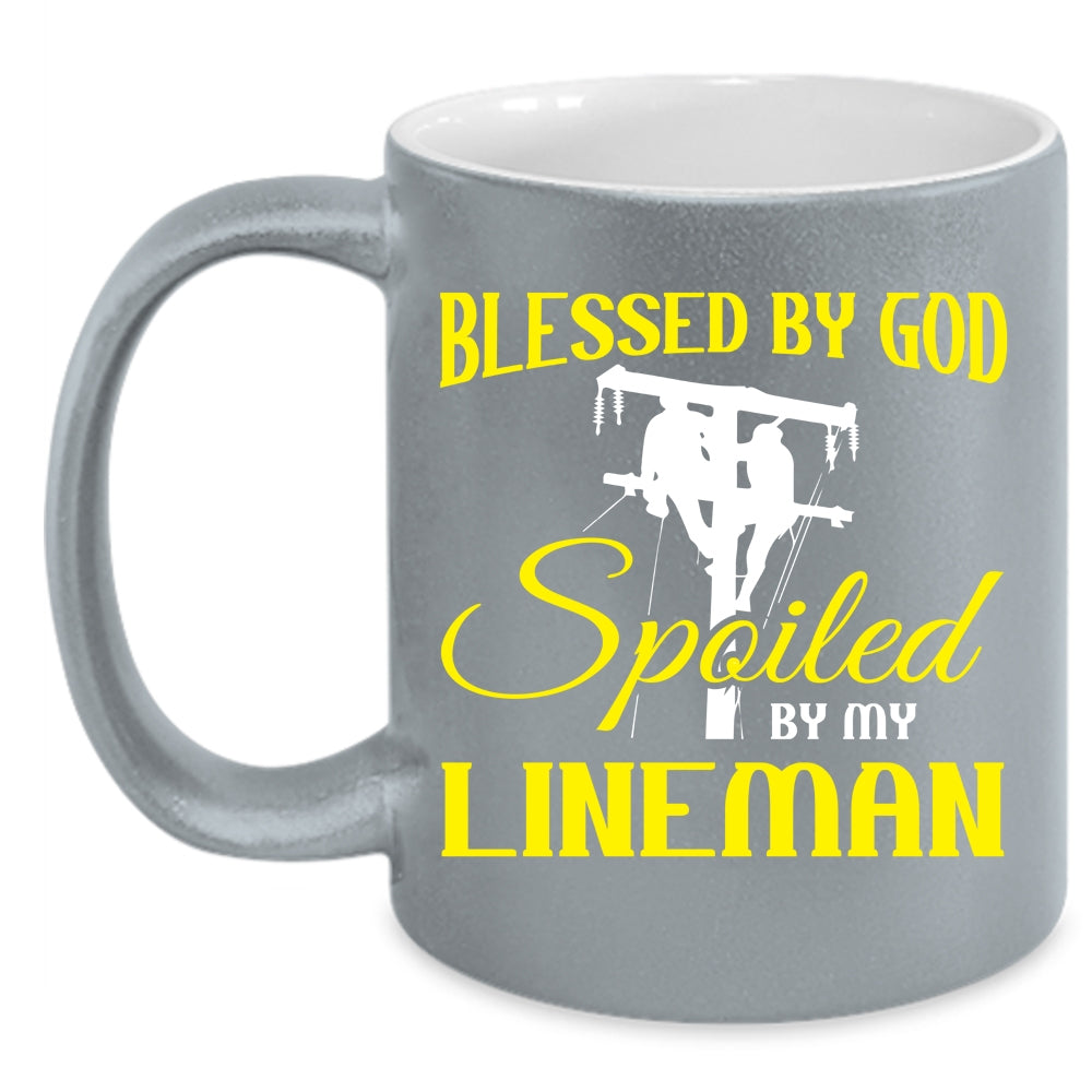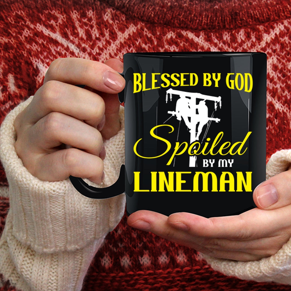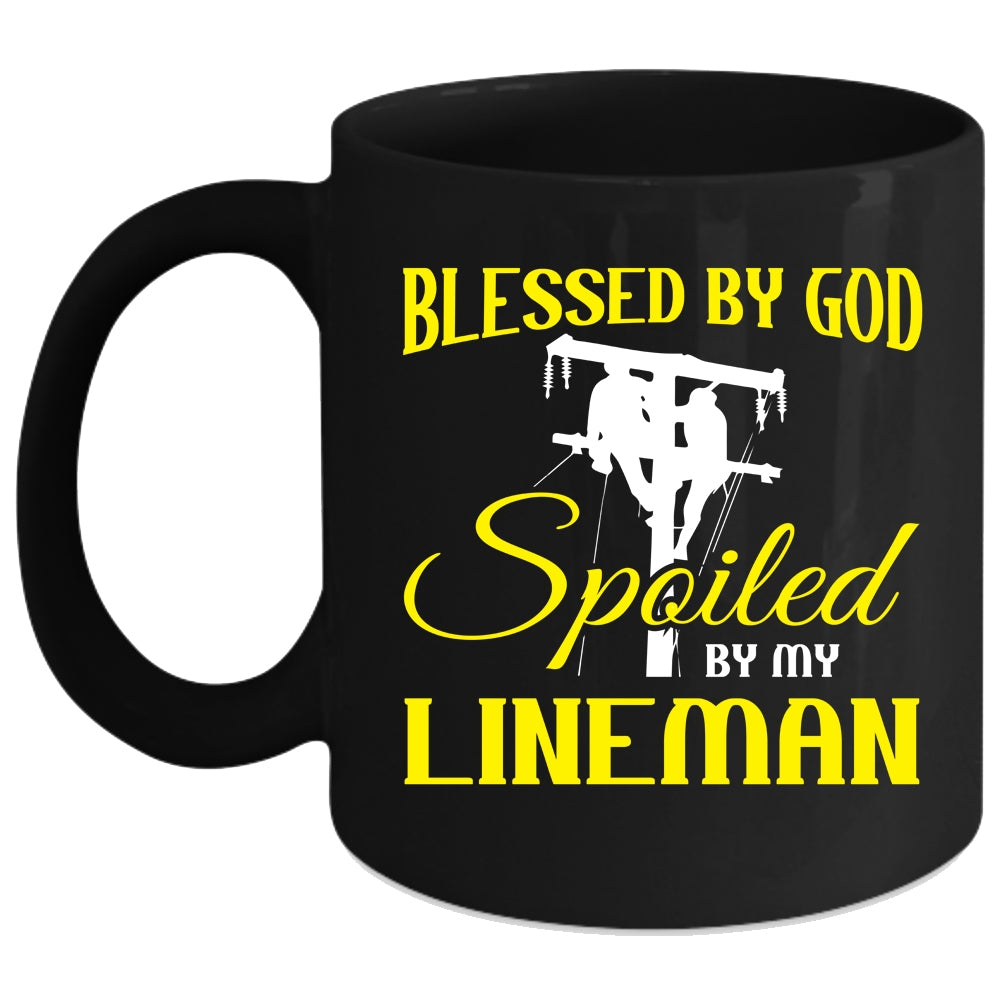 Blessed By God Coffee Mug, Spoiled By My Lineman Coffee Cup