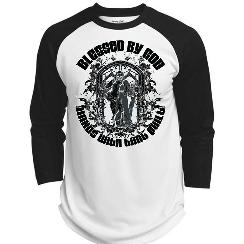 Blessed By God Hands With That Quilt T Shirt, I Love Jesus T Shirt, Awesome T-Shirts (Polyester Game Baseball Jersey)