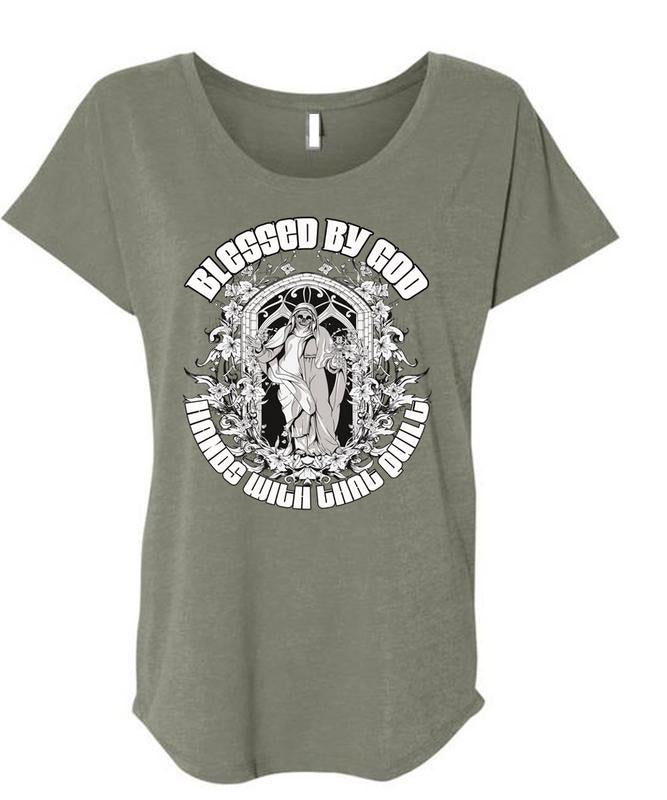 Blessed By God Hands With That Quilt T Shirt, My Favorite T Shirt, Cool Shirt (Ladies' Triblend Dolman Sleeve)