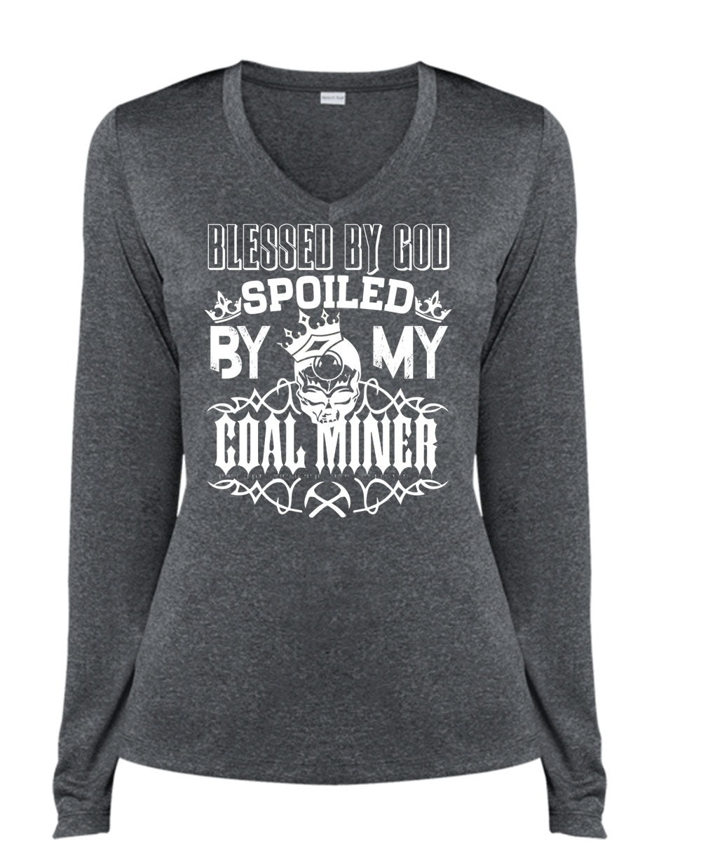 Blessed By God Spoiled By My Coal Miner T Shirt, Loving Shirt (Ladies LS Heather V-Neck)