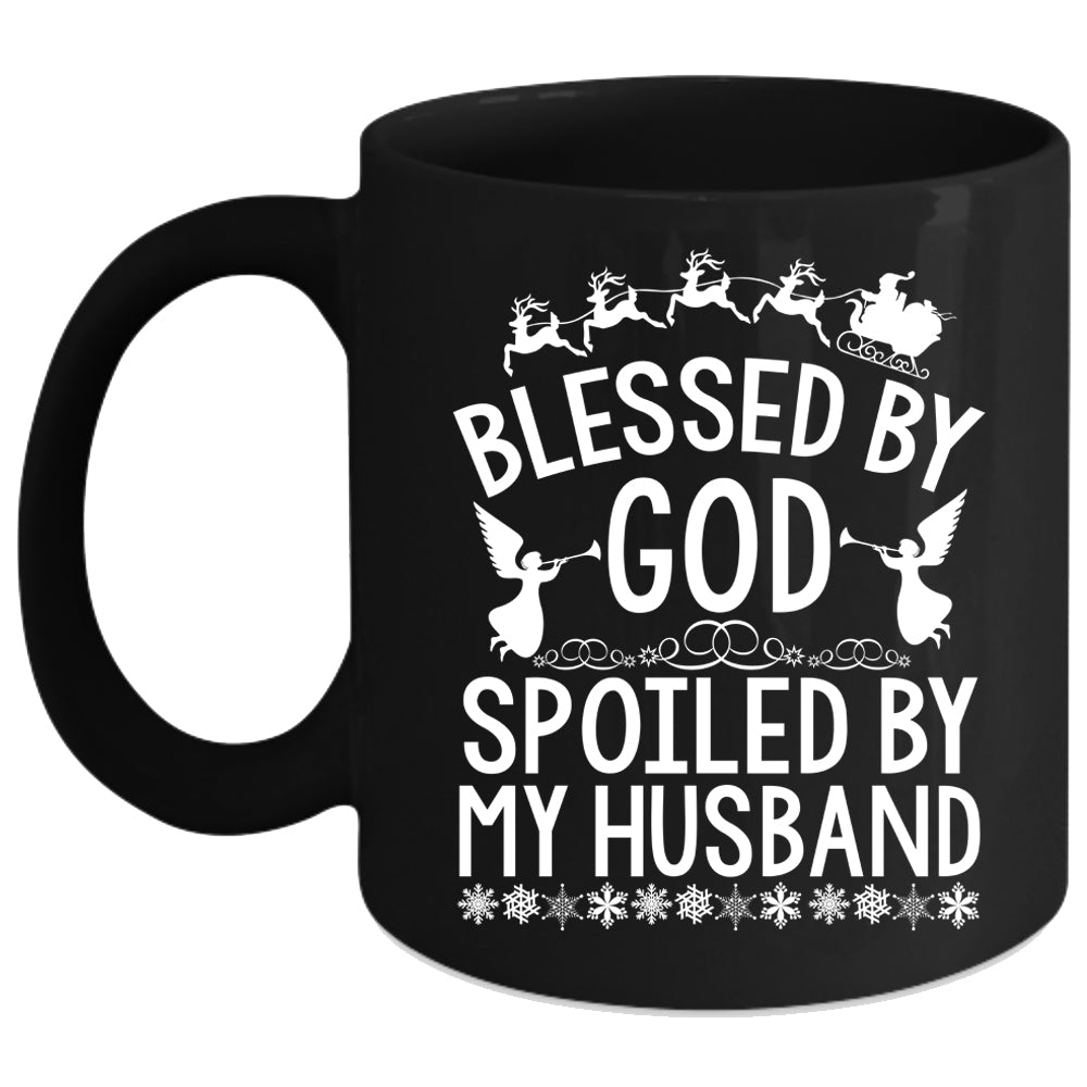Blessed By God Spoiled By My Husband Coffee Mug, Cute Coffee Cup