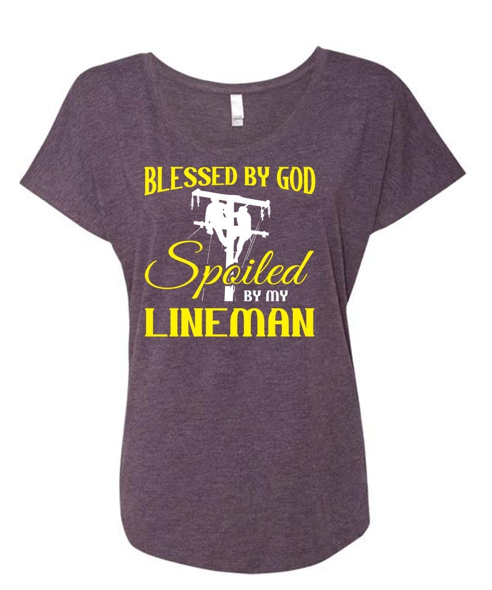 Blessed By God Spoiled By My Lineman T Shirt, Career T Shirt (Ladies' Triblend Dolman Sleeve)