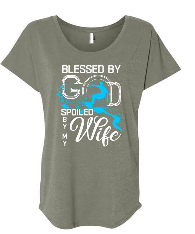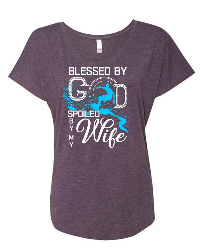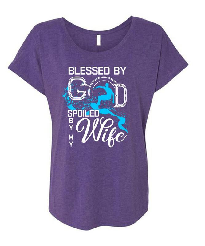 Blessed By God Spoiled By My Wife T Shirt, Being A Husband T Shirt, Cool Shirt (Ladies' Triblend Dolman Sleeve)