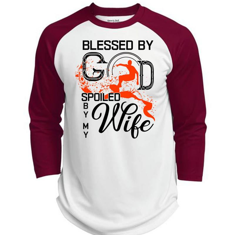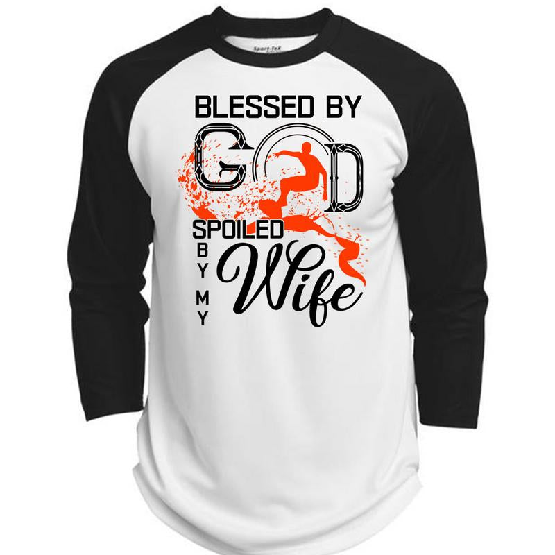 Blessed By God Spoiled By My Wife T Shirt, I Love My Wife T Shirt, Awesome T-Shirts (Polyester Game Baseball Jersey)