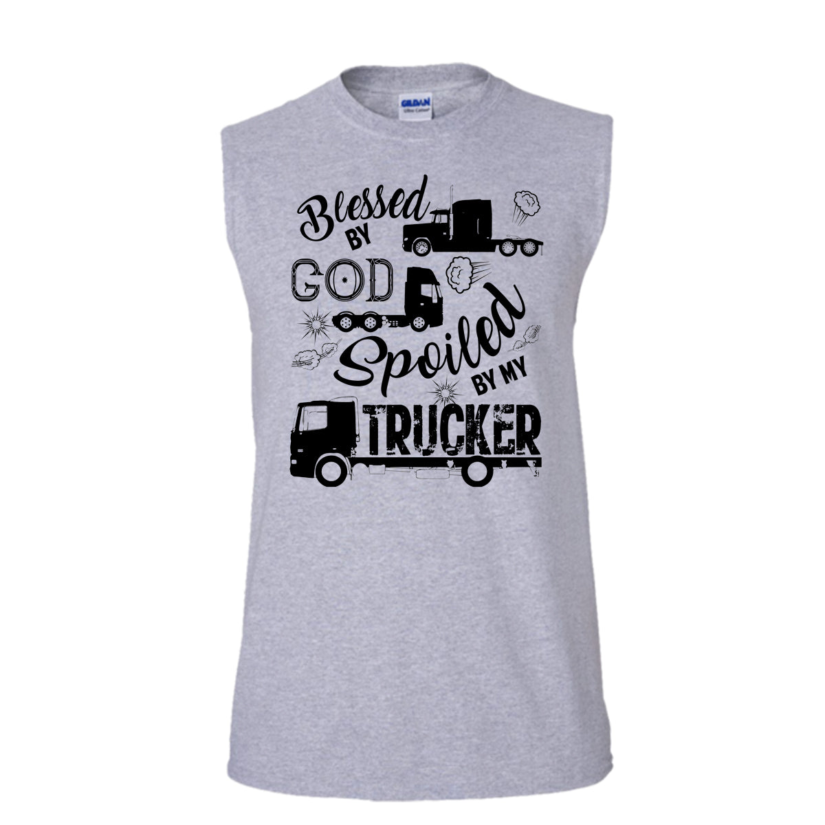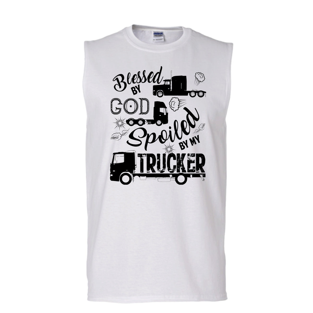 Blessed By God T Shirt, Coolest Trucker Husband T Shirt, Awesome t-shirts (Men's Cotton Sleeveless)