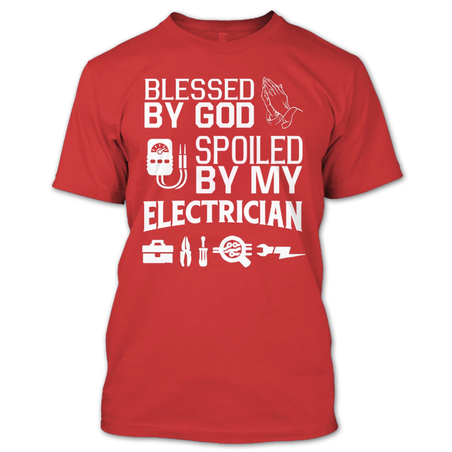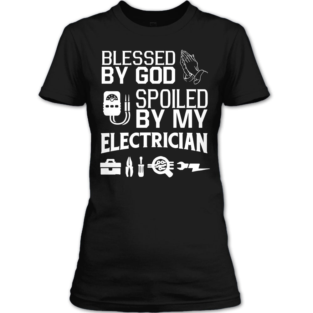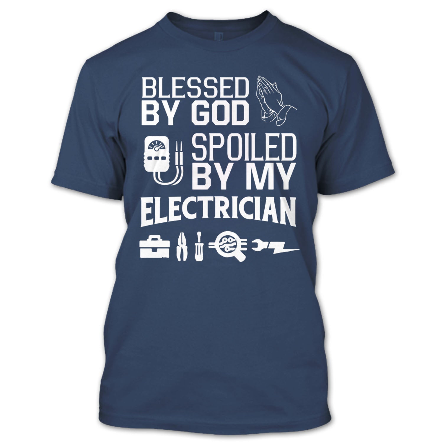 Blessed By God T Shirt, Spoiled By My Electrician T Shirt