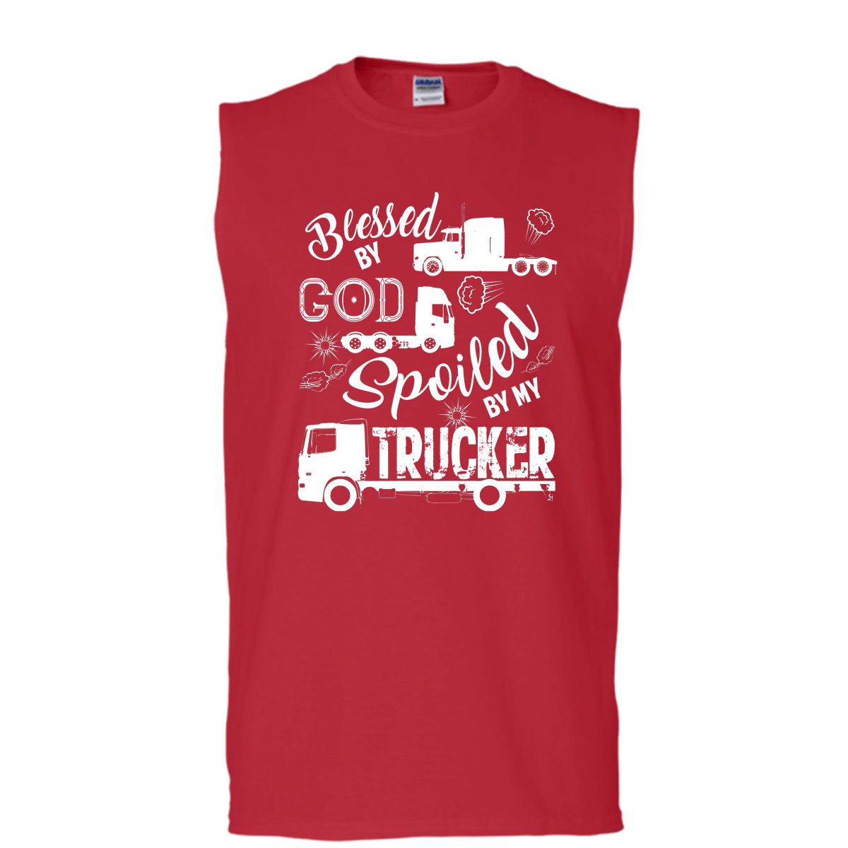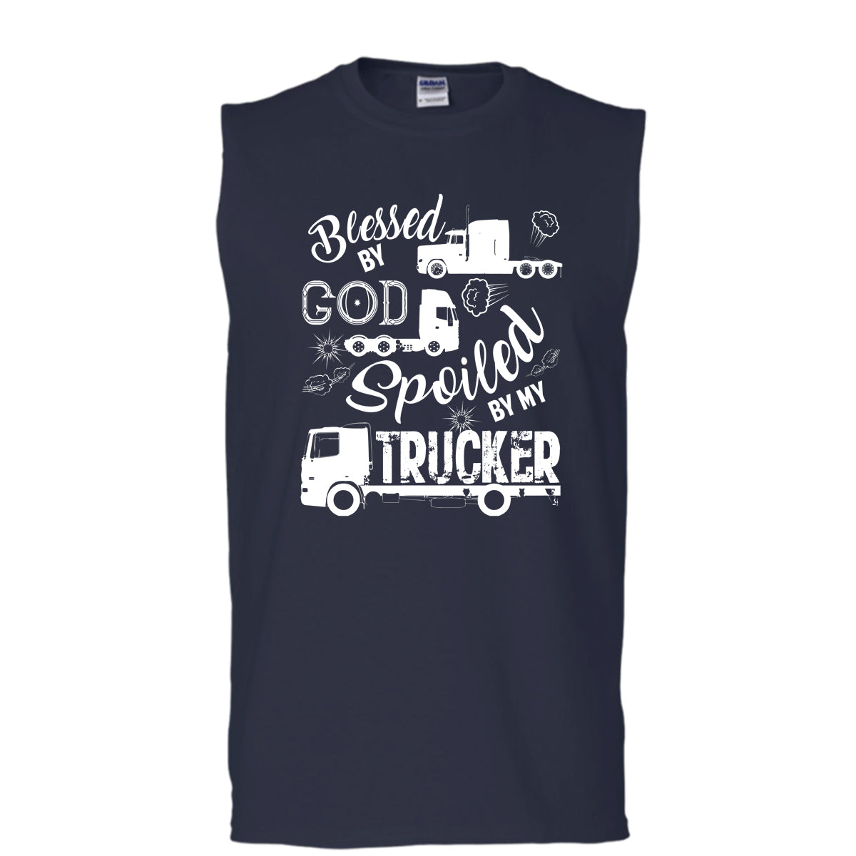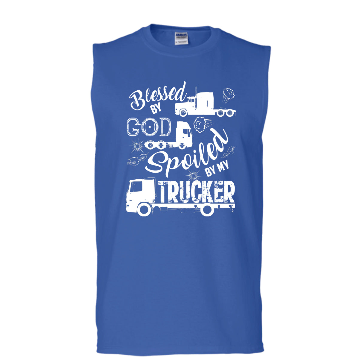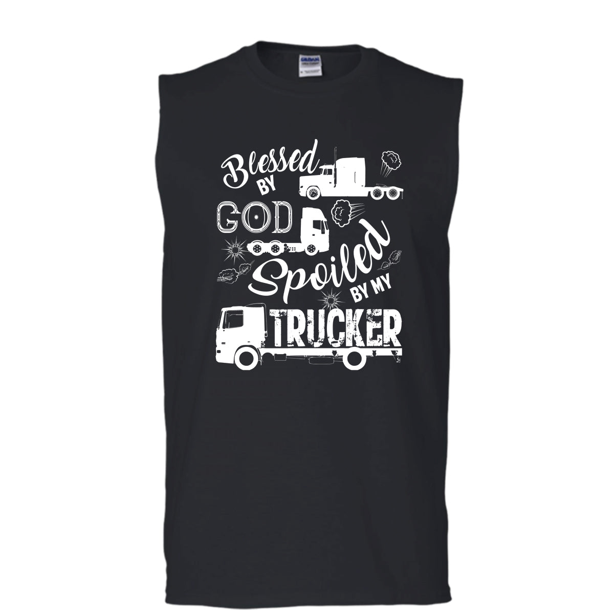 Blessed By God T Shirt, Spoiled By My Trucker T Shirt, Cool T Shirt (Men's Cotton Sleeveless)