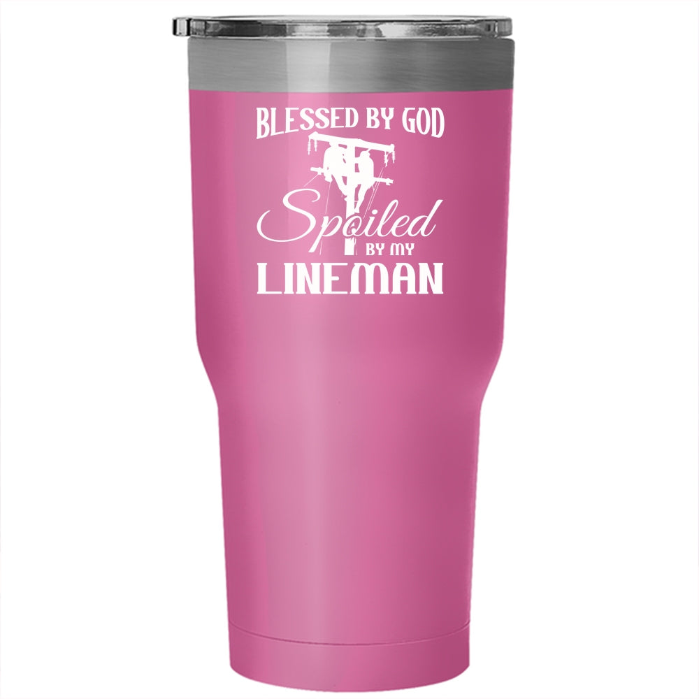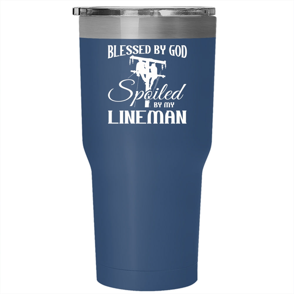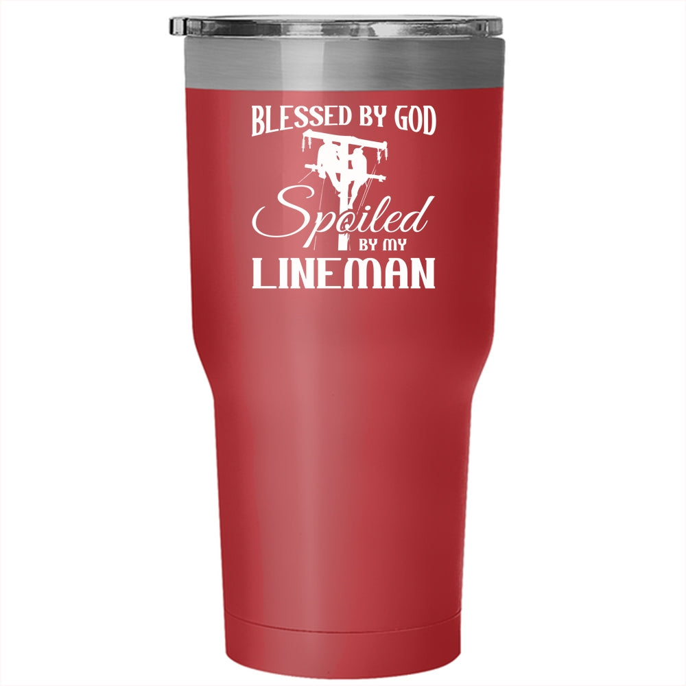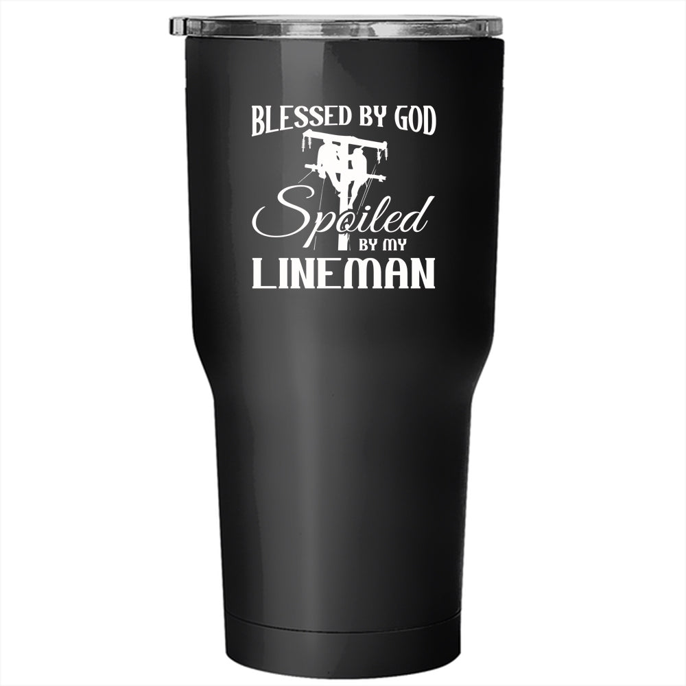 Blessed By God Tumbler 30 oz Stainless Steel, Spoiled By My Lineman Travel Mug