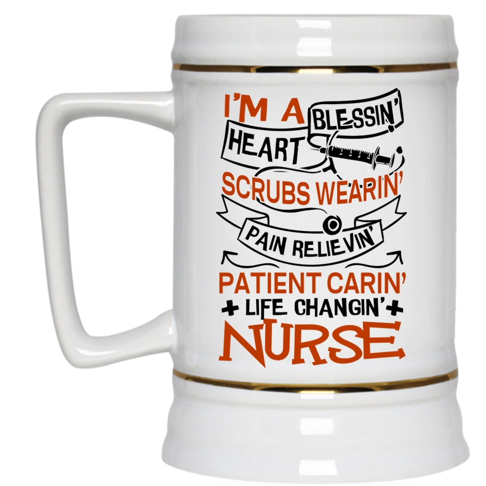 Blessing Heart Scrubs Wearing Beer Stein 22oz, I'm A Nurse Beer Mug