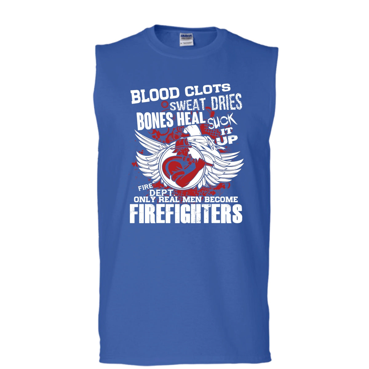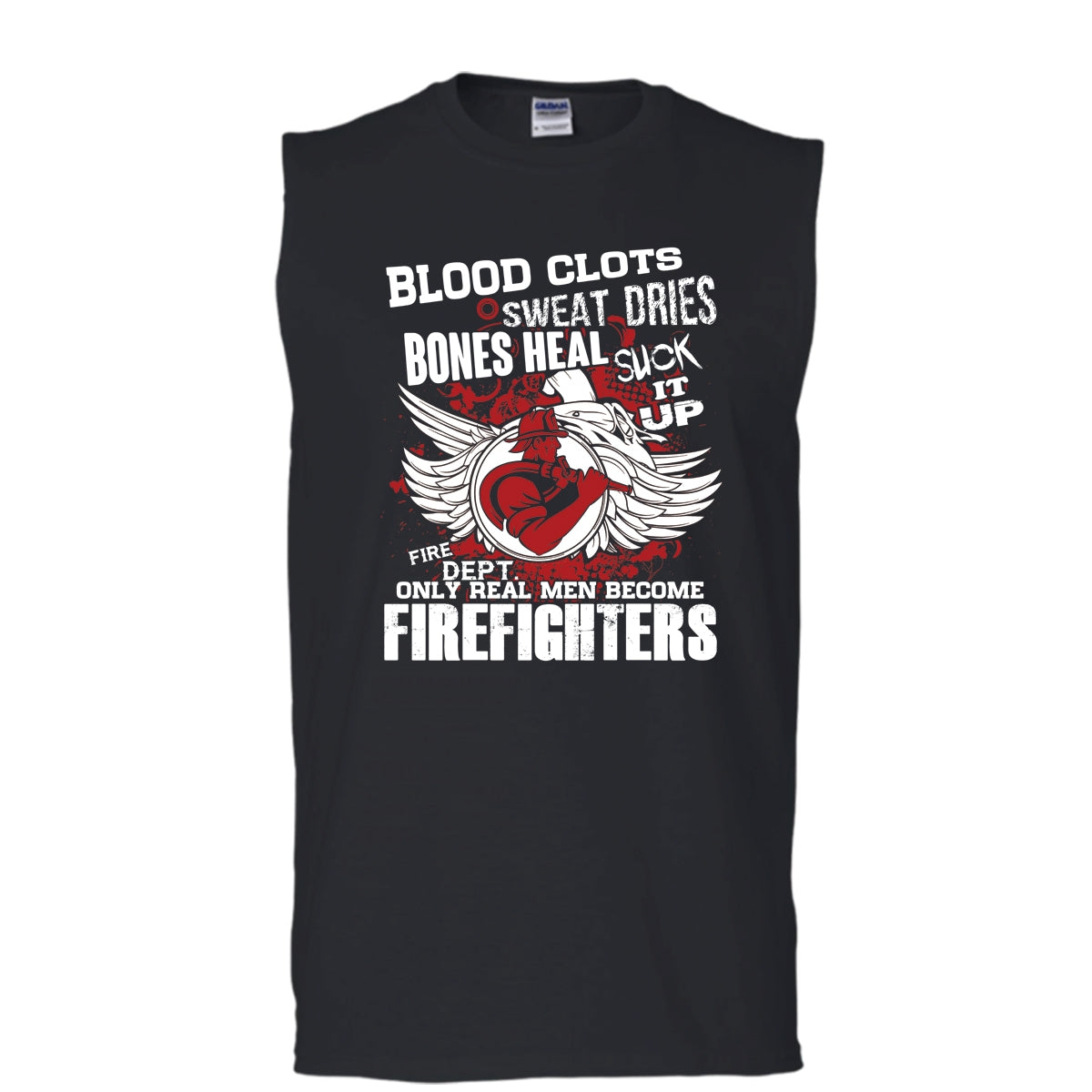 Blood Clots Sweat Dries T Shirt, Only Real Men Become Firefighters T Shirt, Cool T Shirt (Men's Cotton Sleeveless)
