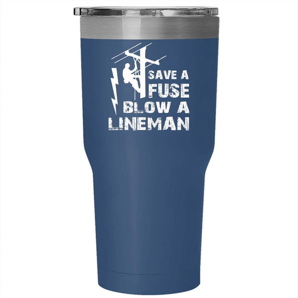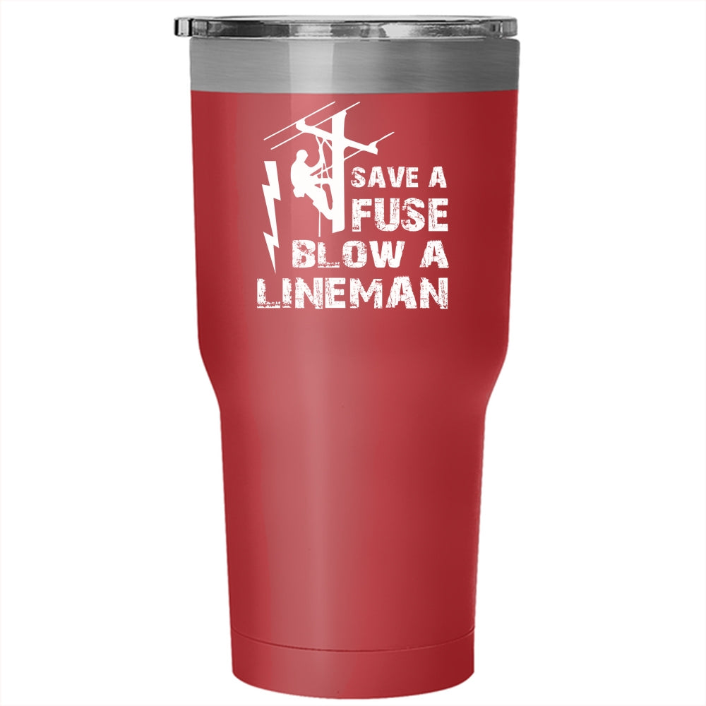 Blow A Lineman Tumbler 30 oz Stainless Steel, Cool Gift For Lineman Travel Mug