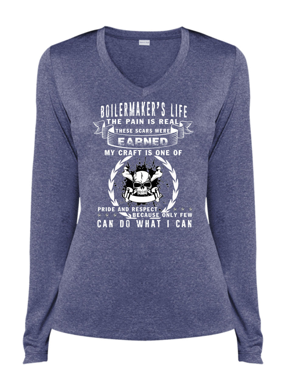 Boilermaker's Life The Pain Is Real T Shirt, These Scars Were Earned T Shirt, Cool Shirt (Ladies LS Heather V-Neck)