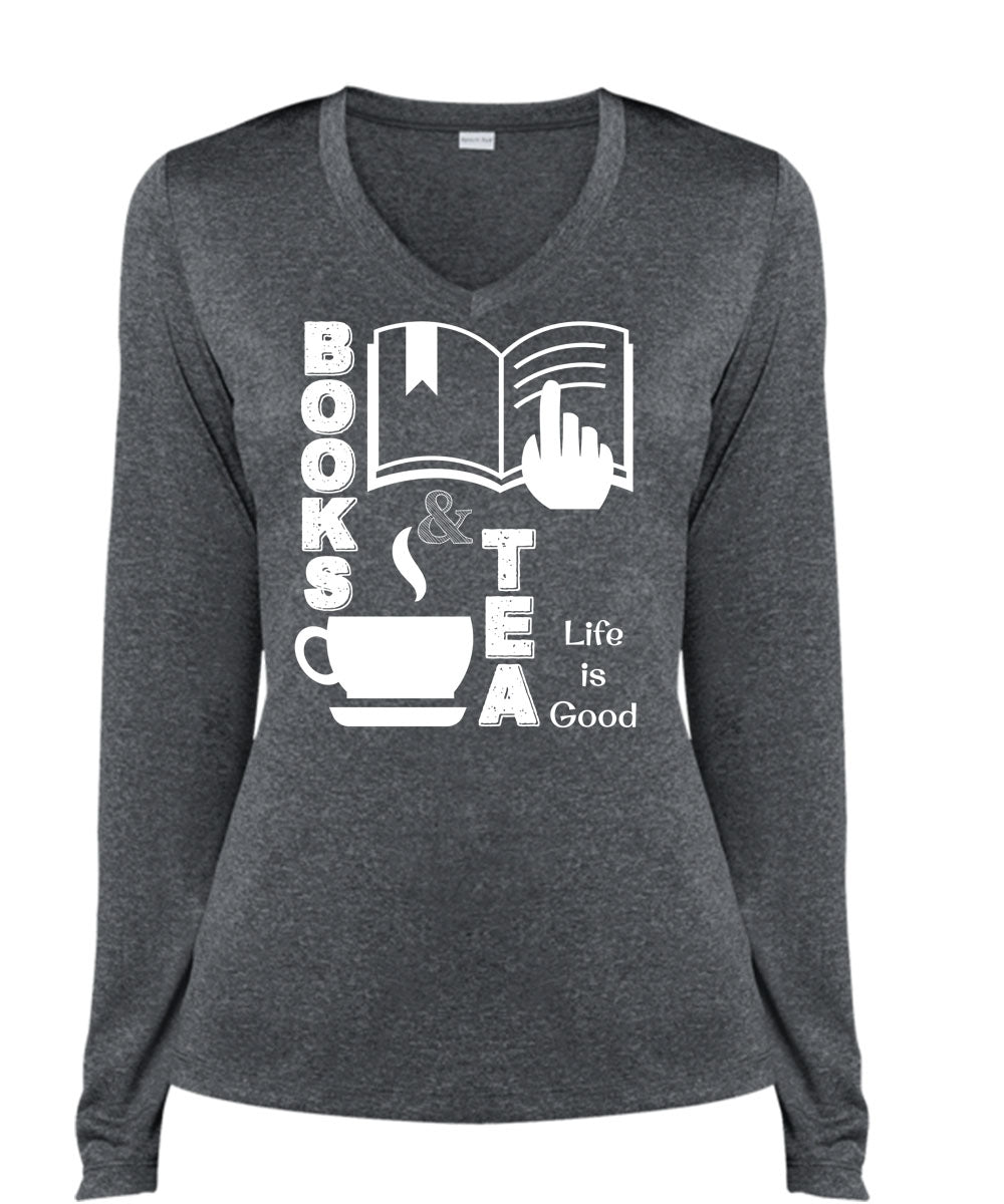 Books And Tea Life Is Good T Shirt, Being A Reader T Shirt, Cool Shirt (Ladies LS Heather V-Neck)