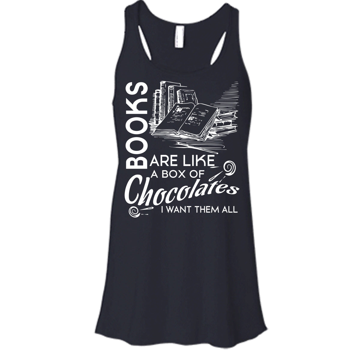 Books Are Like A Box Of Chocolate T Shirt, I Want Them All T Shirt, Cool T Shirt
