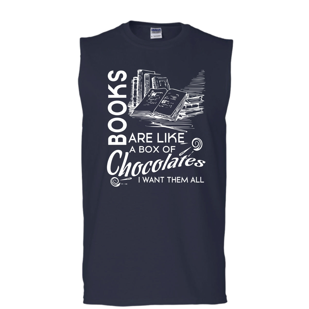 Books Are Like A Box Of Chocolate T Shirt, I Want Them All T Shirt, Cool T Shirt (Men's Cotton Sleeveless)