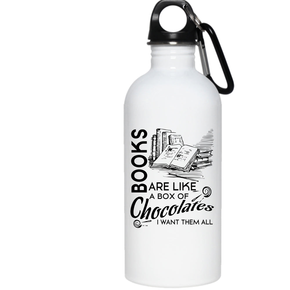 Books Are Like A Box Of Chocolates 20 oz Stainless Steel Bottle,Cool Book Reader Outdoor Sports Water Bottle