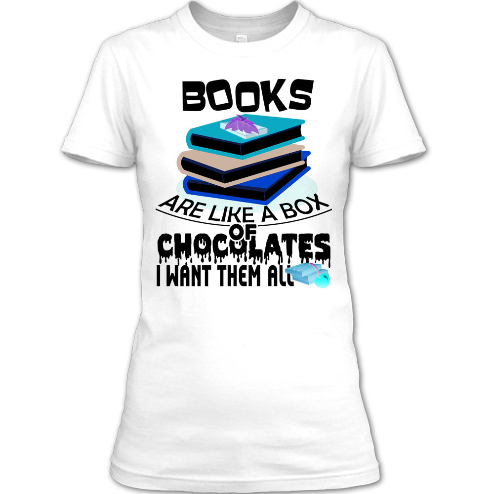 Books Are Like A Box Of Chocolates T Shirt, Coolest Book Reader T Shirt