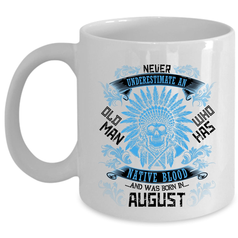 Born In August Coffee Mug, Old Man Has Native Blood Cup
