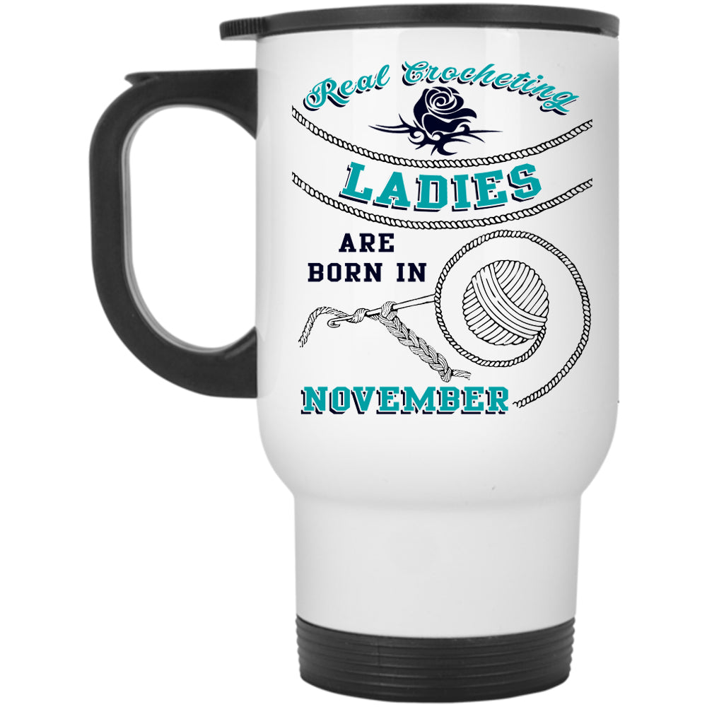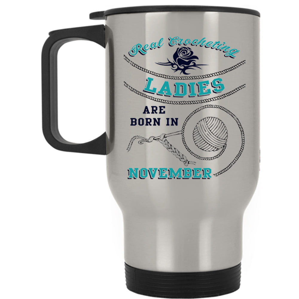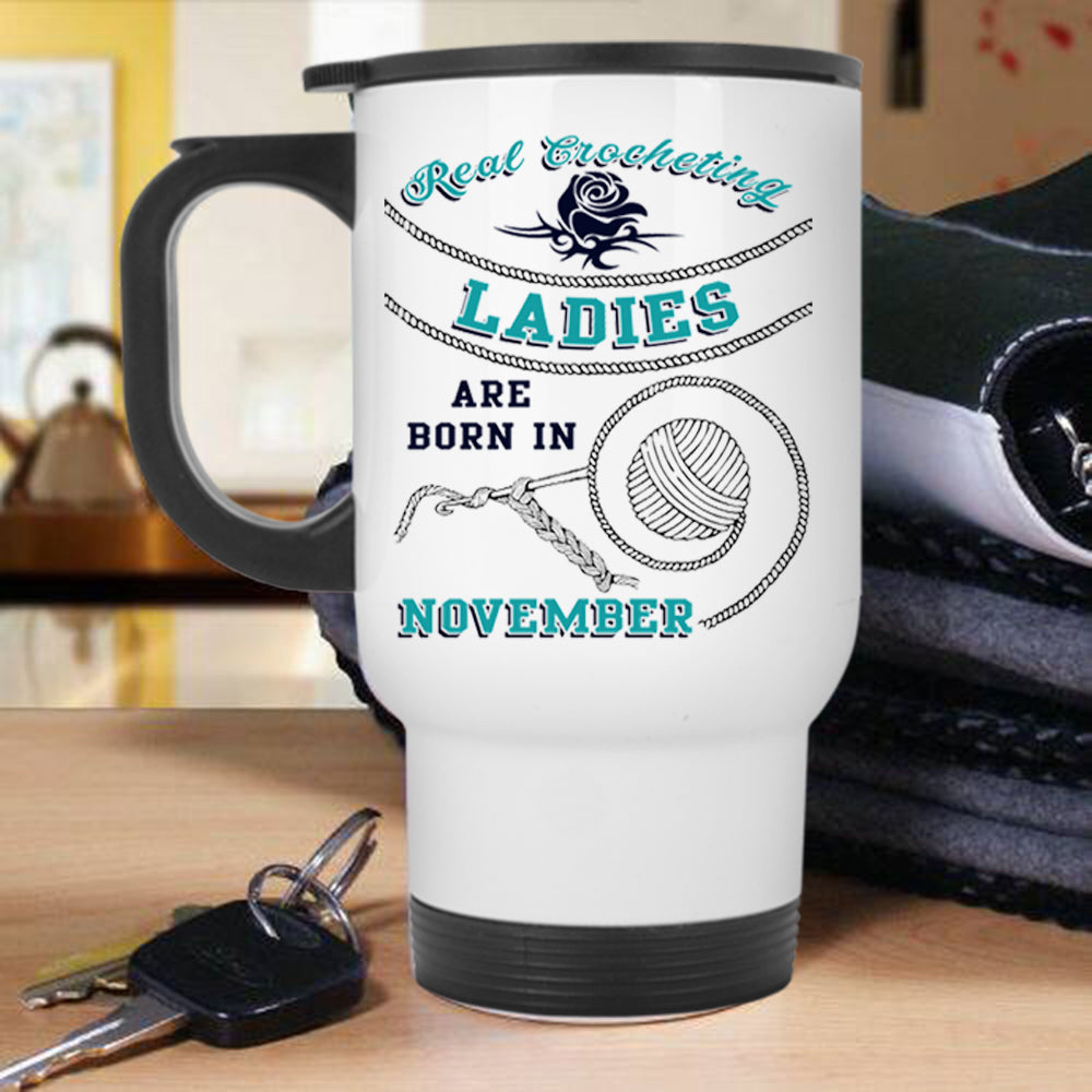 Born In November Travel Mug, Real Crocheting Ladies Mug