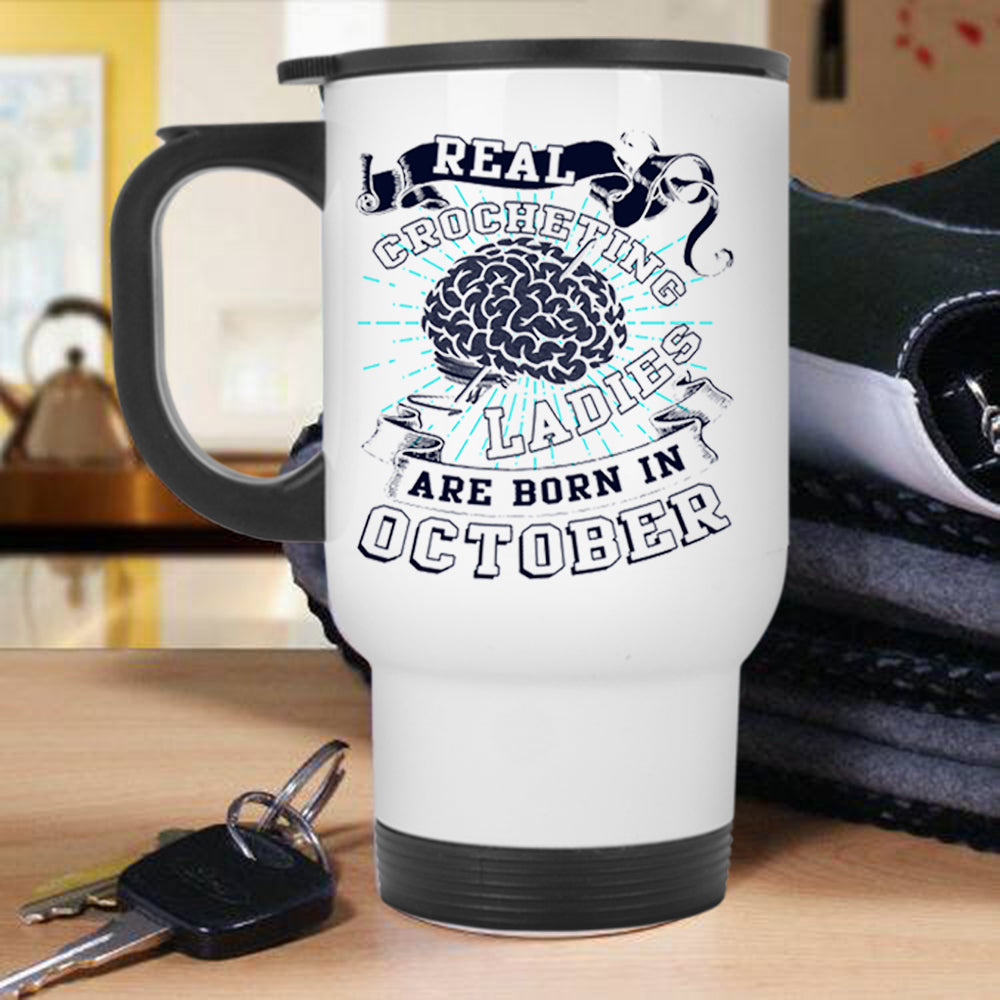Born In October Travel Mug, Real Crocheting Ladies Mug