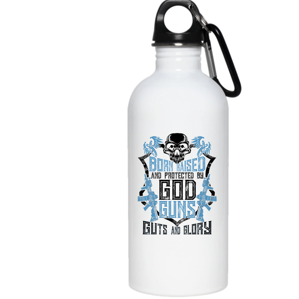 Born Raised And Protected By God Guns 20 oz Stainless Steel Bottle,Cool Gunner Outdoor Sports Water Bottle