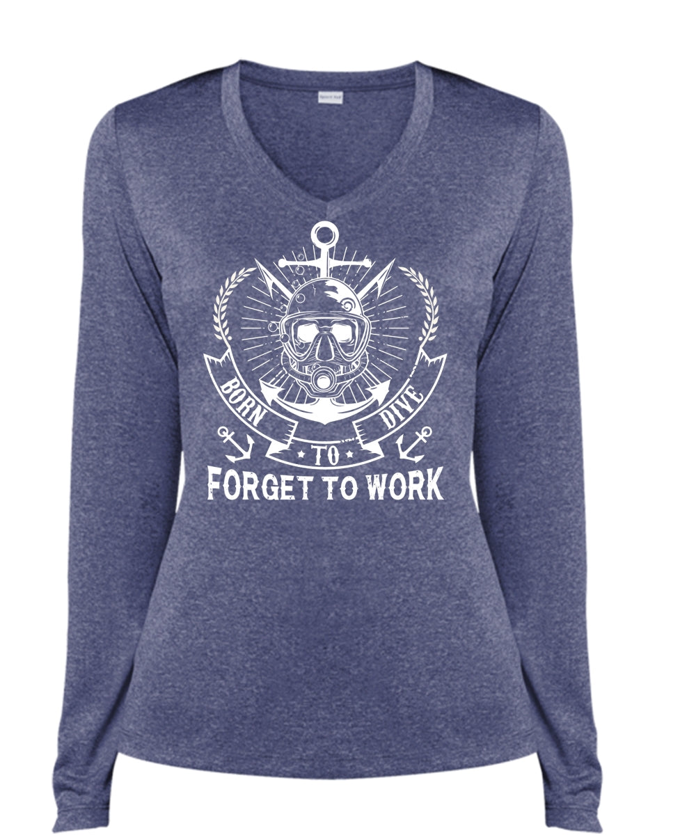 Born To Dive To Forget To Work T Shirt, Sport T Shirt, I Love Dive T Shirt (Ladies LS Heather V-Neck)