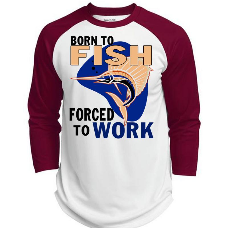 Born To Fish Forced To Work T Shirt, I Love Fishing T Shirt, Awesome T-Shirts (Polyester Game Baseball Jersey)