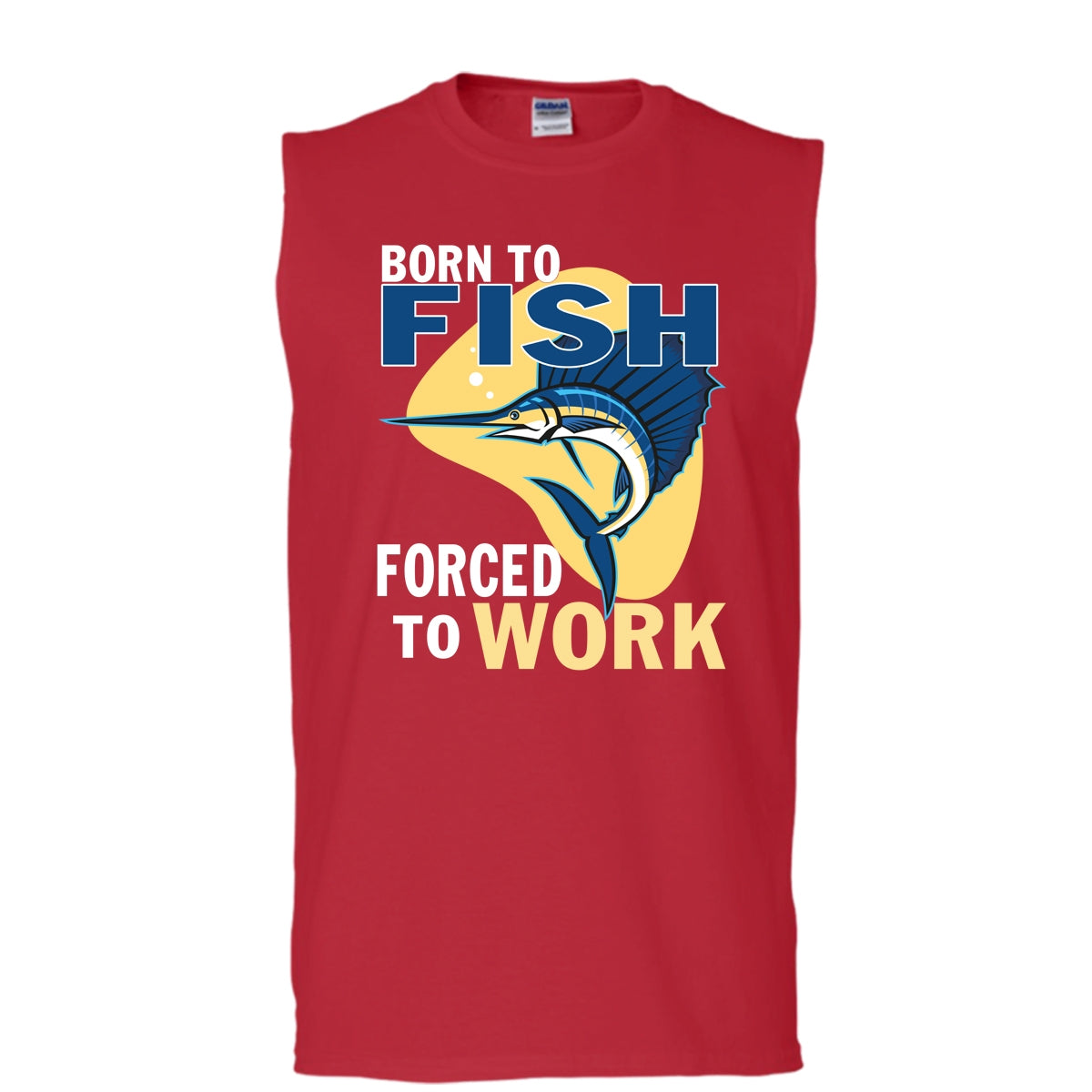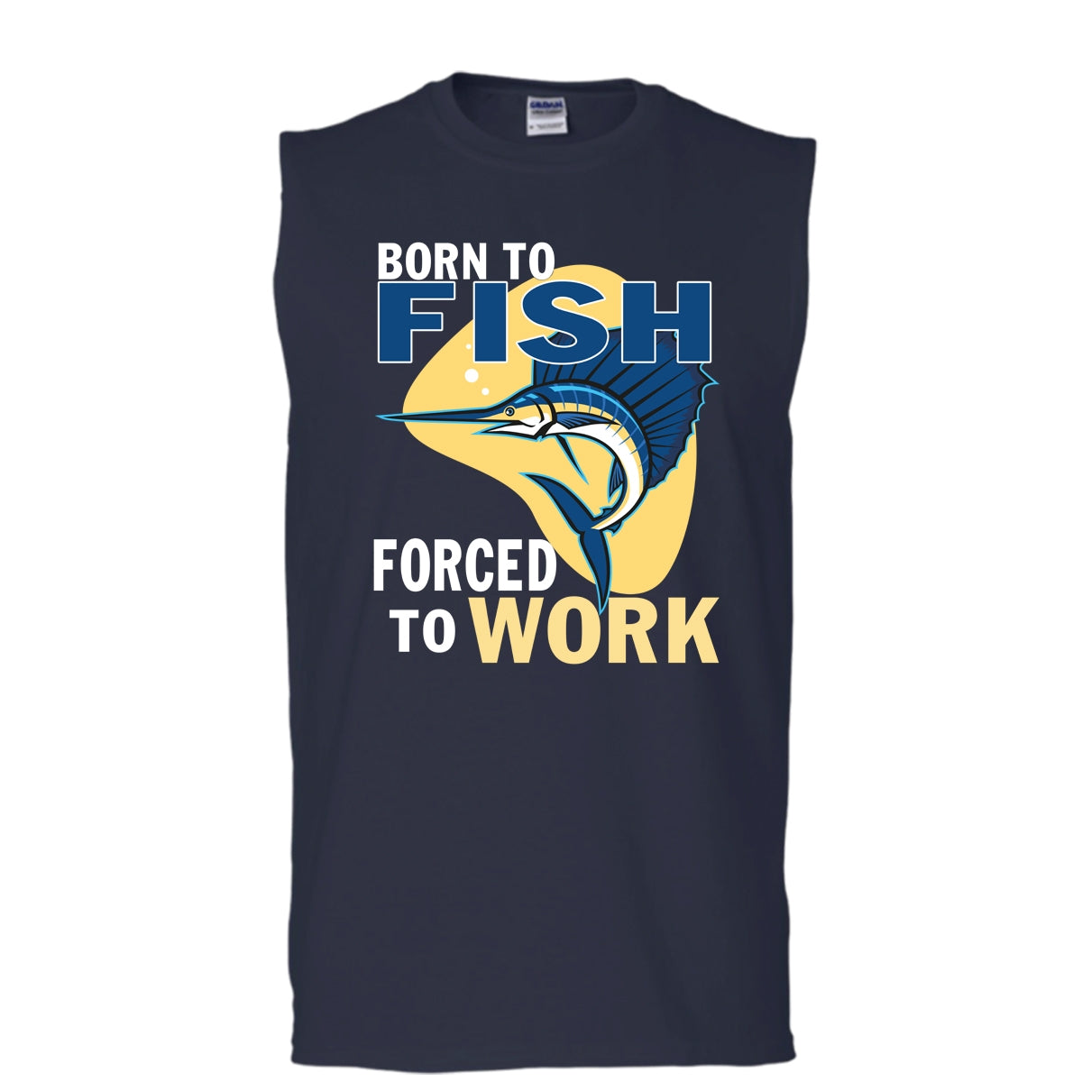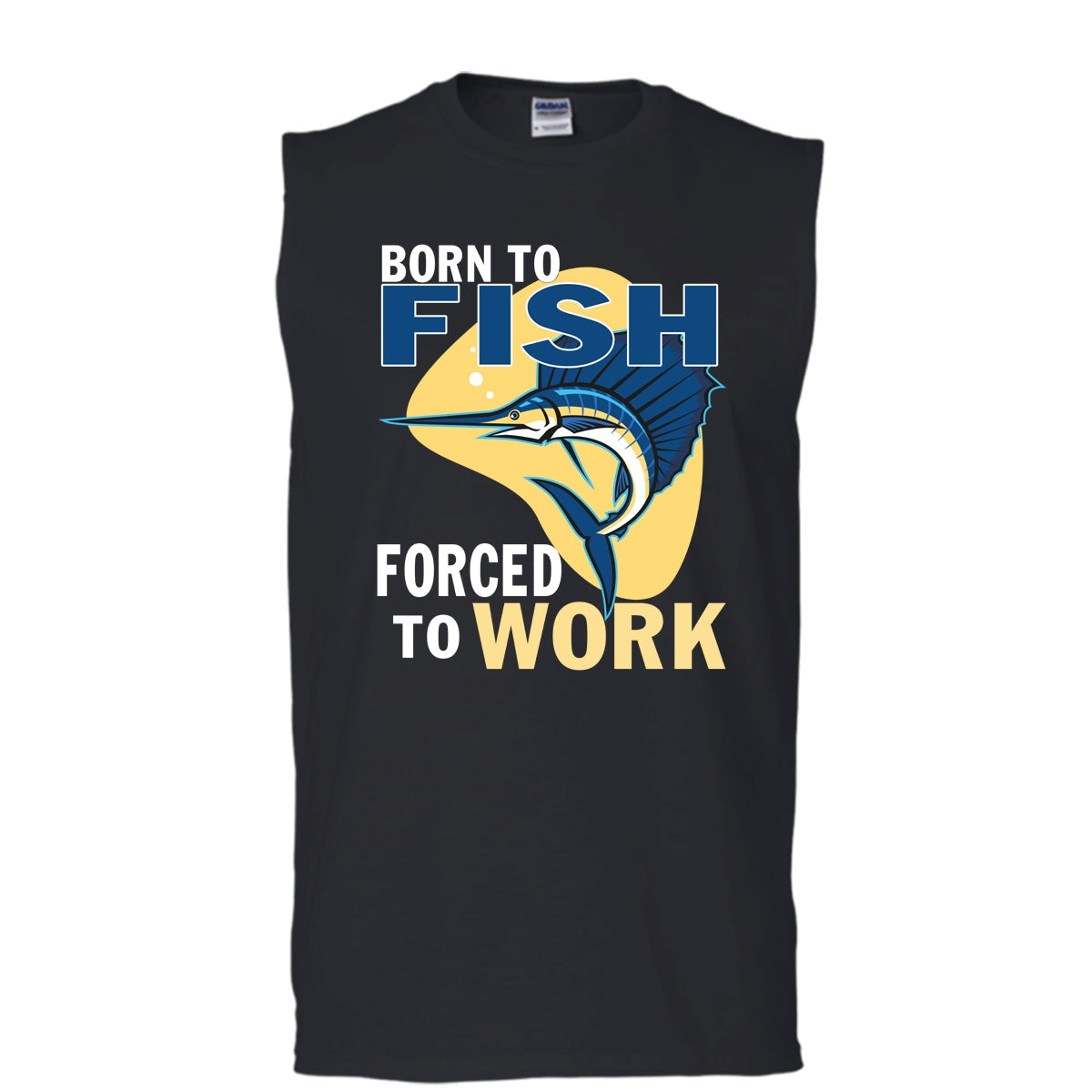 Born To Fish T Shirt, Forced To Work T Shirt, Cool T Shirt (Men's Cotton Sleeveless)