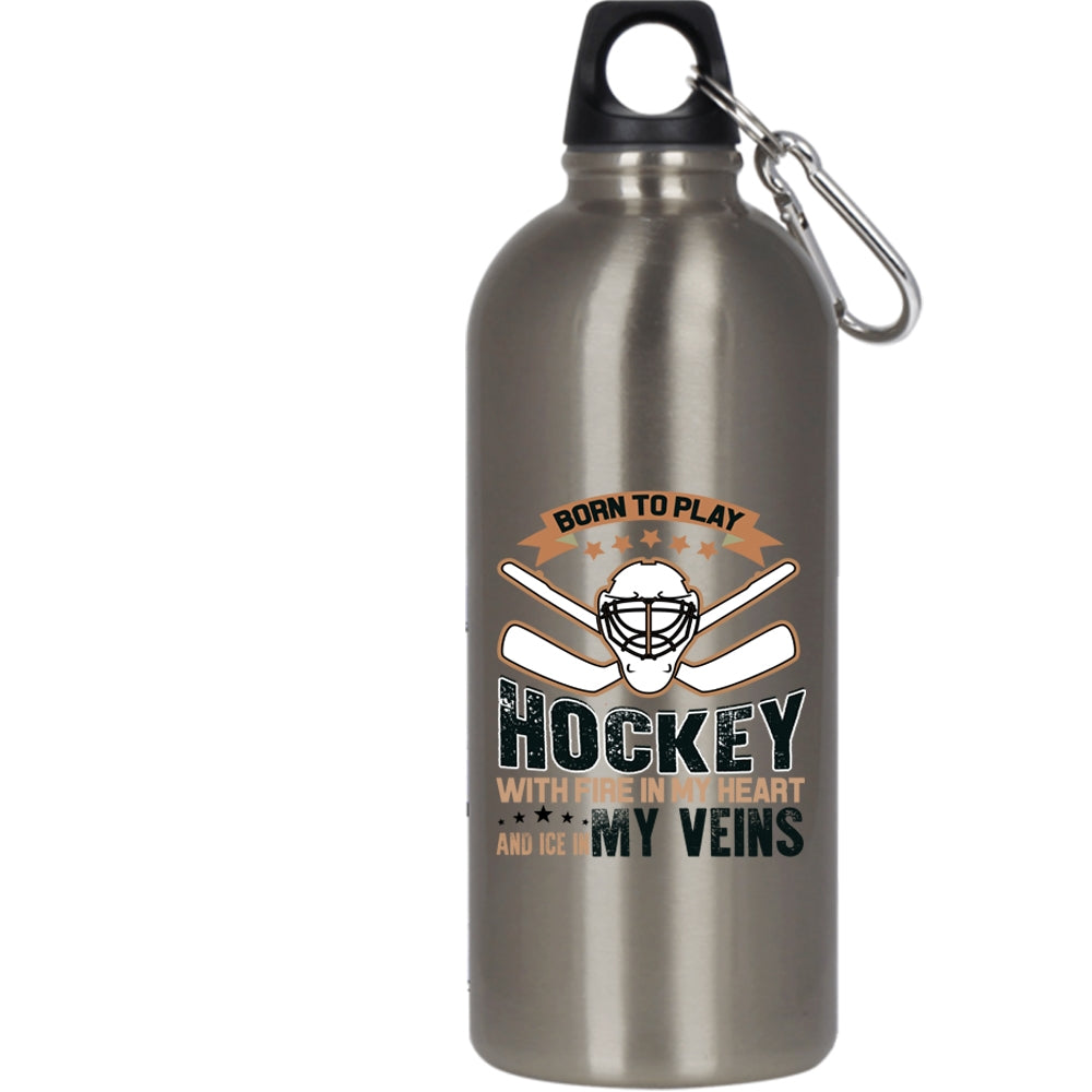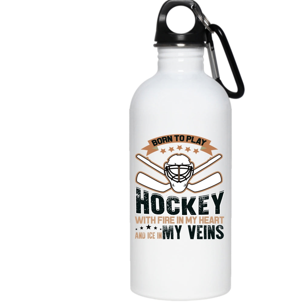 Born To Play Hockey With Fire In My Heart 20 oz Stainless Steel Bottle,Love Hockey Outdoor Sports Water Bottle