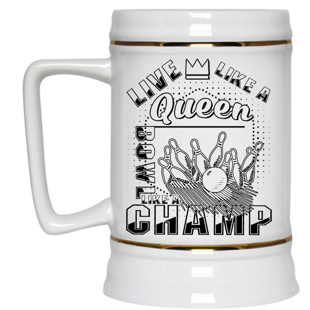 Bowl Like A Champ Beer Stein 22oz, Live Like A Queen Beer Mug